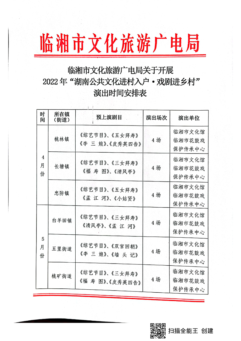 湖南“公共文化進村入戶·戲劇進鄉村”演出時間安排表公示