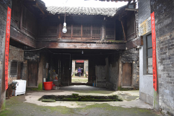 黃金堂古建群老屋位于臨湘市詹橋鎮,呈“品”字形排列,建于清乾隆丙午年間(1786年),占地面積約4000平方米,現有大小房間50余間,保留完好的天井13個,經實地勘察在其后堂墻壁青磚上刻有“乾隆丙午年造創,臨照、必照兄弟立”等字樣,初步判定距今已有235年的歷史。