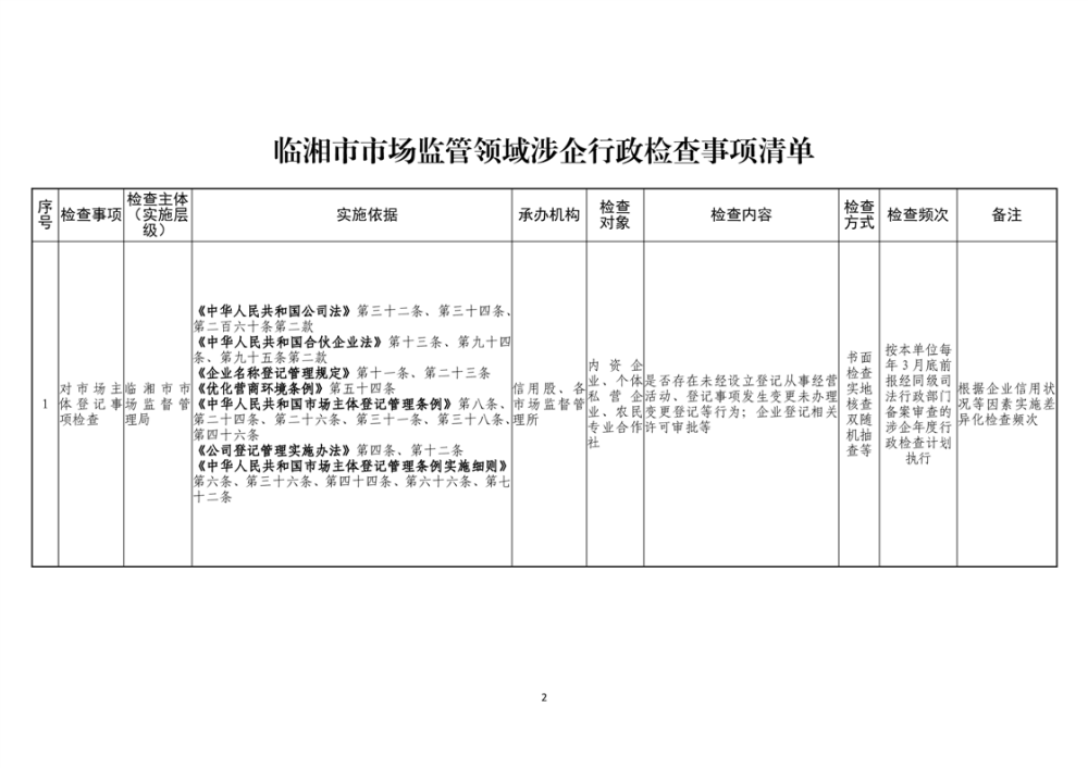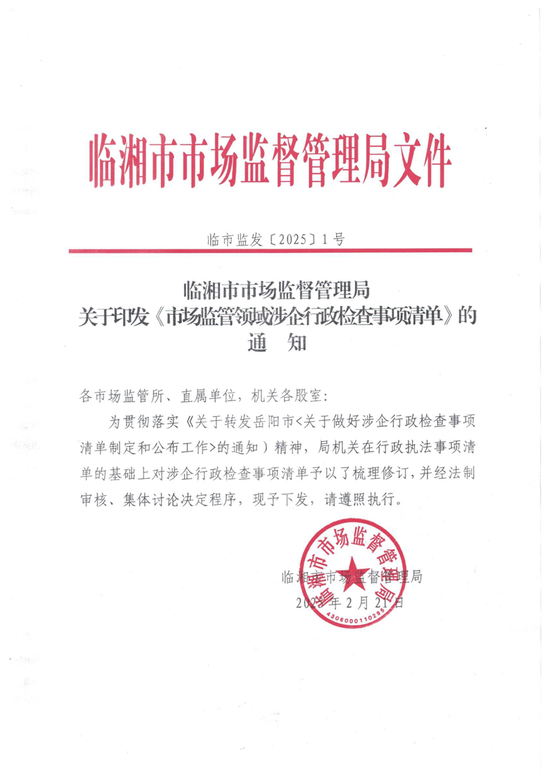 臨湘市市場(chǎng)監(jiān)督管理局關(guān)于印發(fā)《市場(chǎng)監(jiān)管領(lǐng)域涉企行政檢查事項(xiàng)清單》的通知