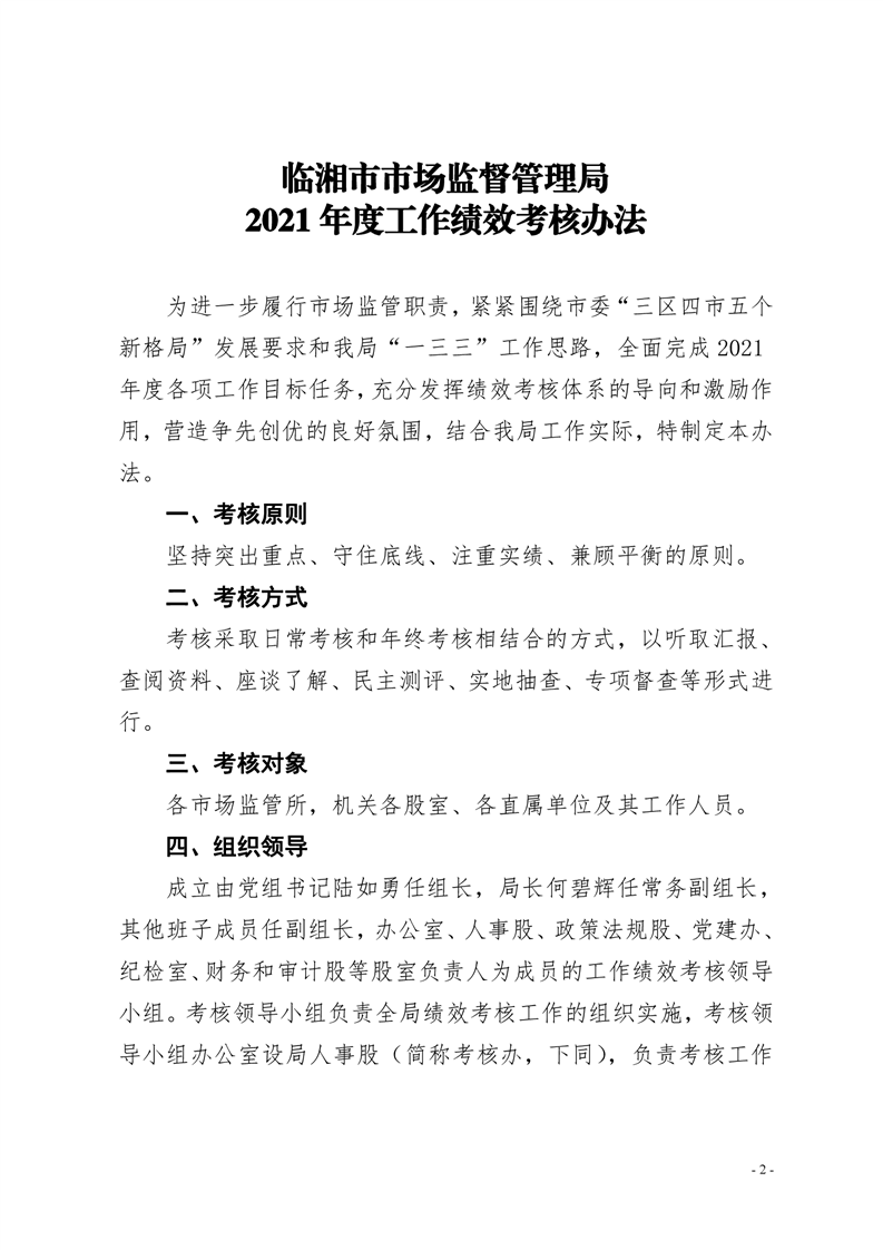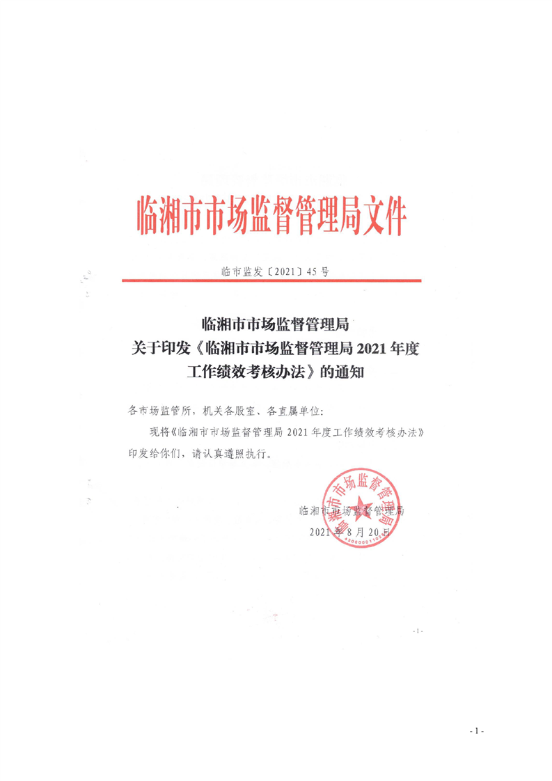 臨湘市市場監督管理局關于印發《臨湘市市場監督管理局2021年度工作績效考核方法》的通知