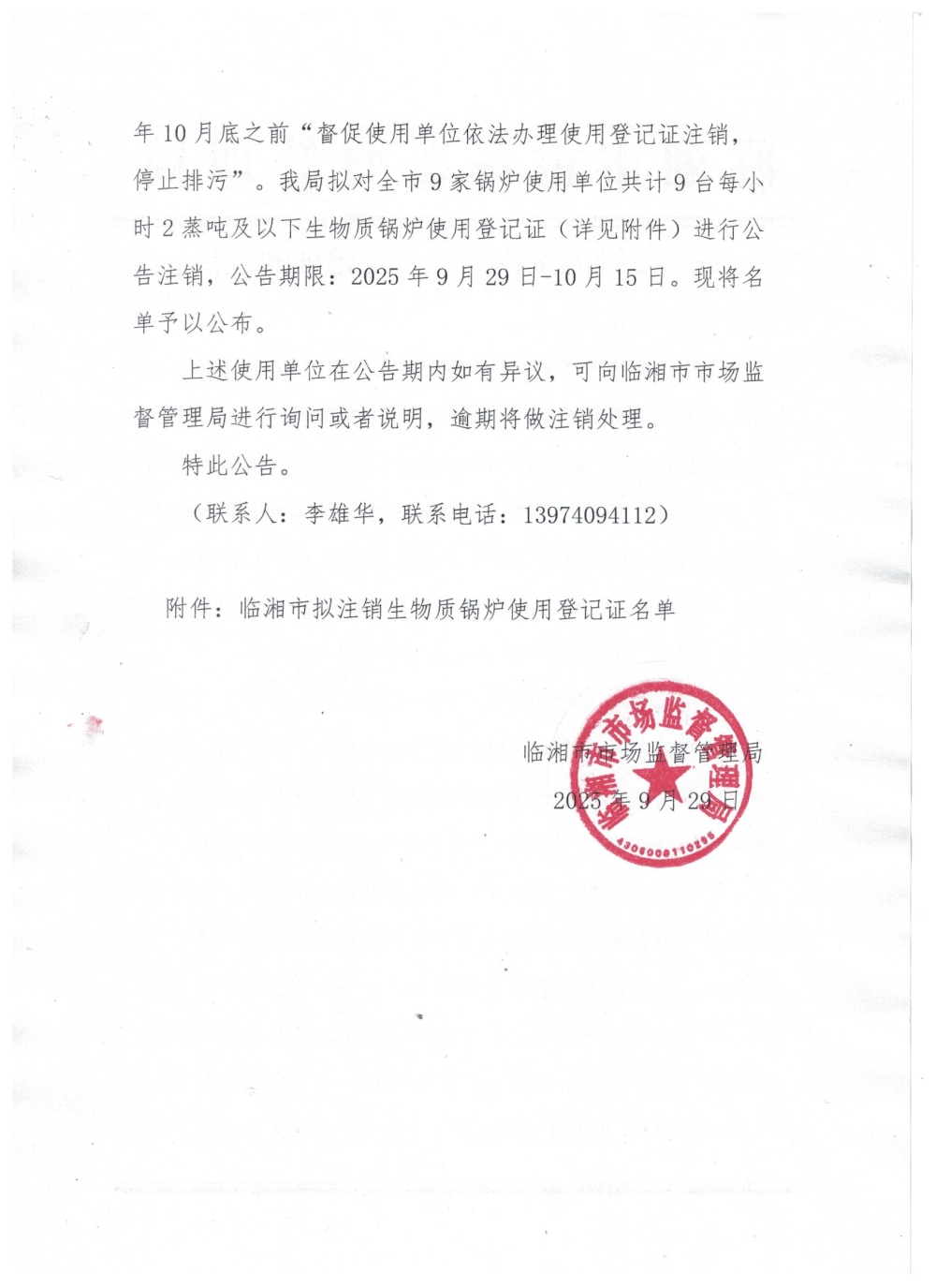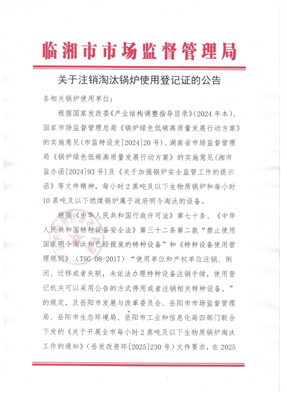 關(guān)于注銷淘汰鍋爐使用登記證的公告(第四批)