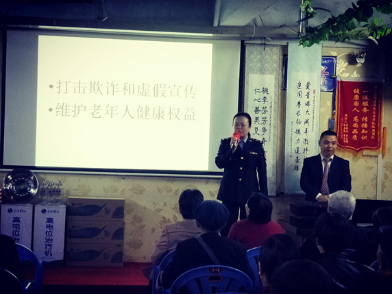 重陽節期間,臨湘市食品藥品工商質量監督管理局執法人員走進社區,開展以“打擊欺詐和虛假宣傳,維護老年人健康權益”為主題的保健食品安全知識大講堂活動。