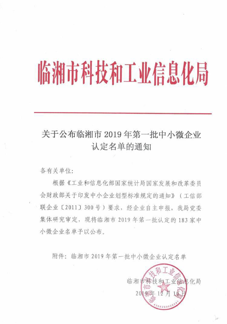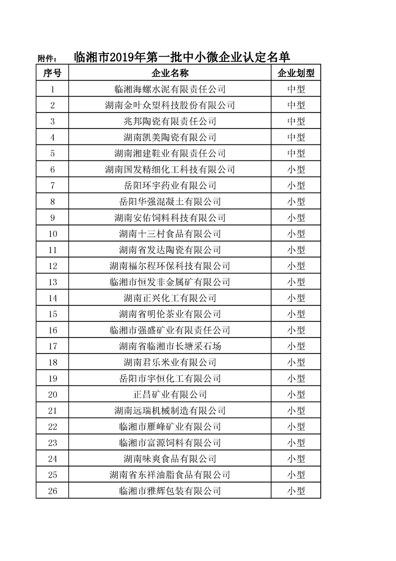 關(guān)于公布臨湘市2019年第一批中小微企業(yè)認(rèn)定名單的通知