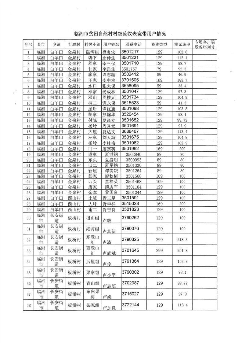 臨湘市貧困自然村村級驗收表寬帶用戶情況