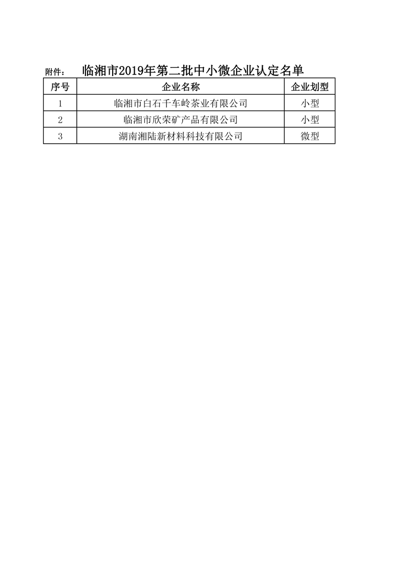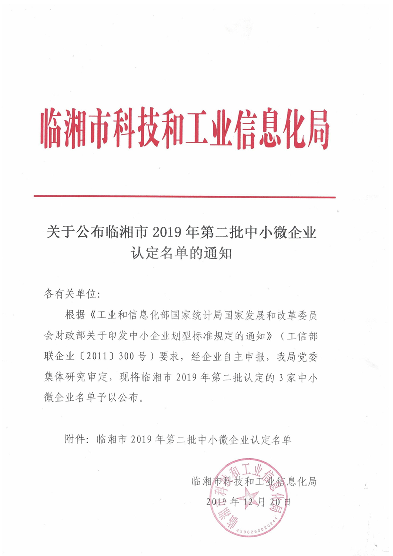 關于公布臨湘市2019年第二批中小微企業(yè)認定名單的通知