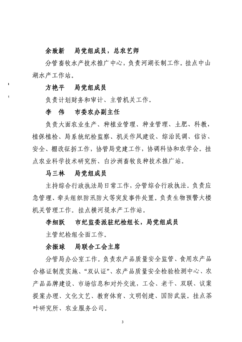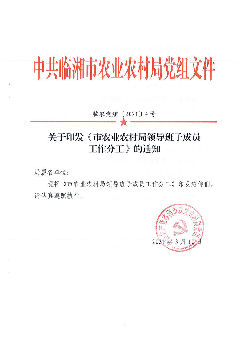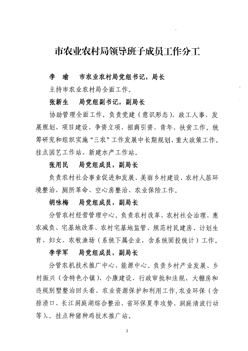 關(guān)于印發(fā)《市農(nóng)業(yè)農(nóng)村局領(lǐng)導(dǎo)班子成員 工作分工》的通知