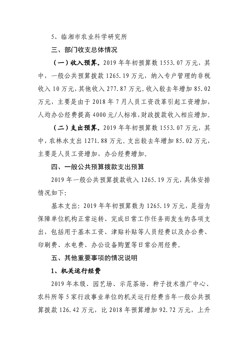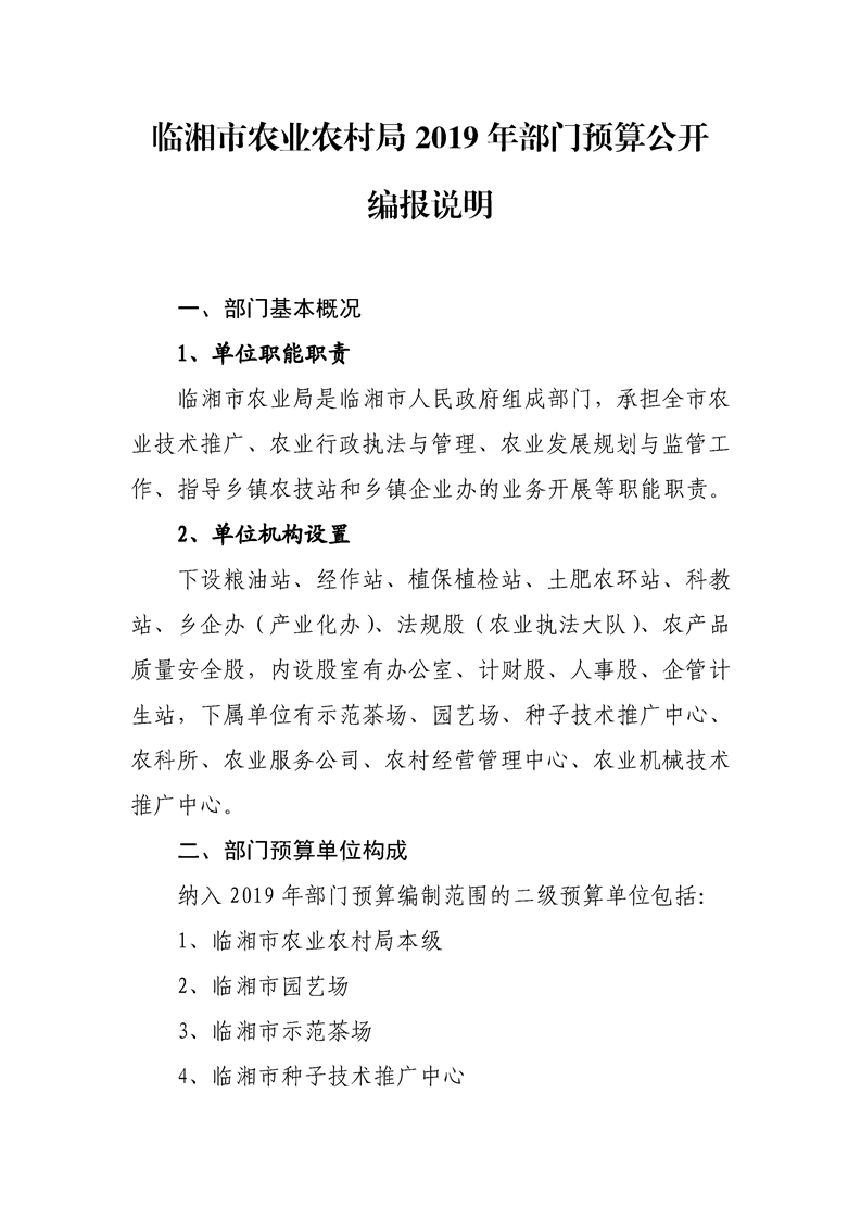臨湘市農業農村局2019年部門預算公開編報說明