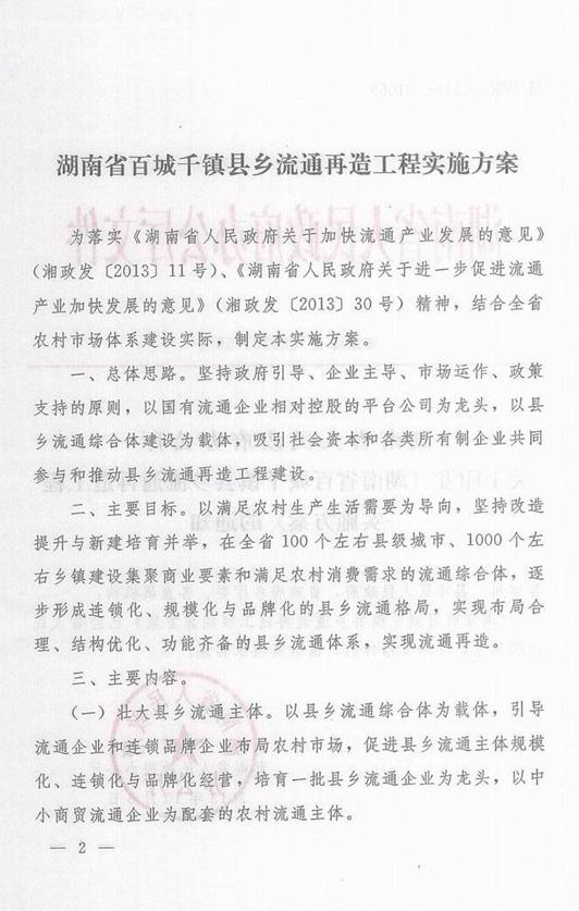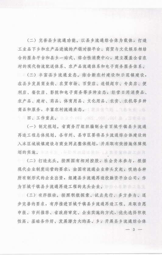 《湖南省百城千鎮(zhèn)縣鄉(xiāng)流通再造工程實施方案》的通知