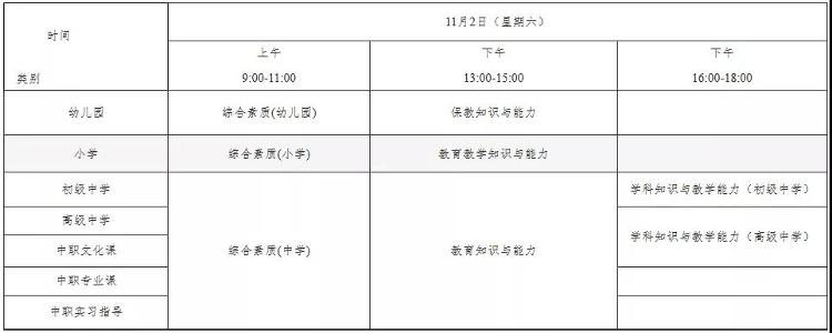 (四)全國統一考試時間為11月2日,各類別考試科目與時間安排如下:
