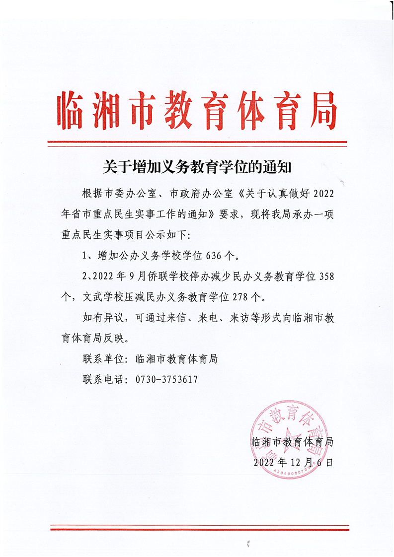 關(guān)于增加義務(wù)教育學(xué)位的通知