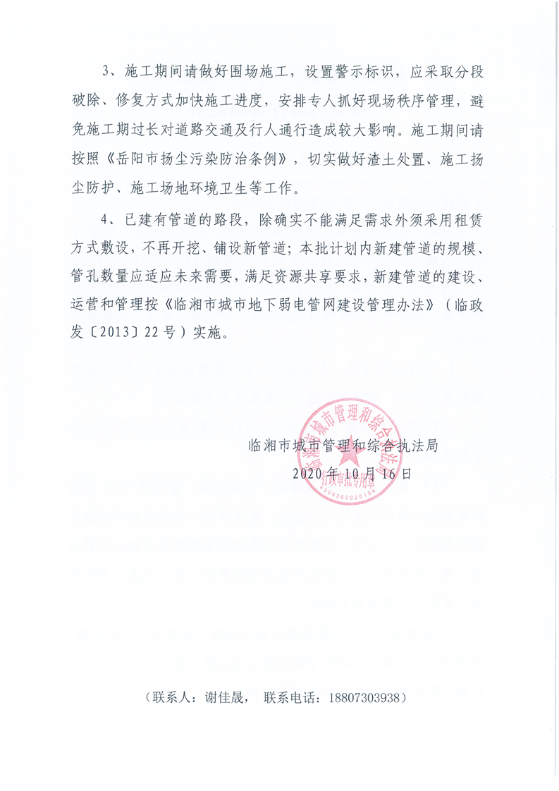 中國(guó)移動(dòng)通信集團(tuán)岳陽(yáng)市臨湘市分公司辦理臨時(shí)占用、挖掘城市道路許可