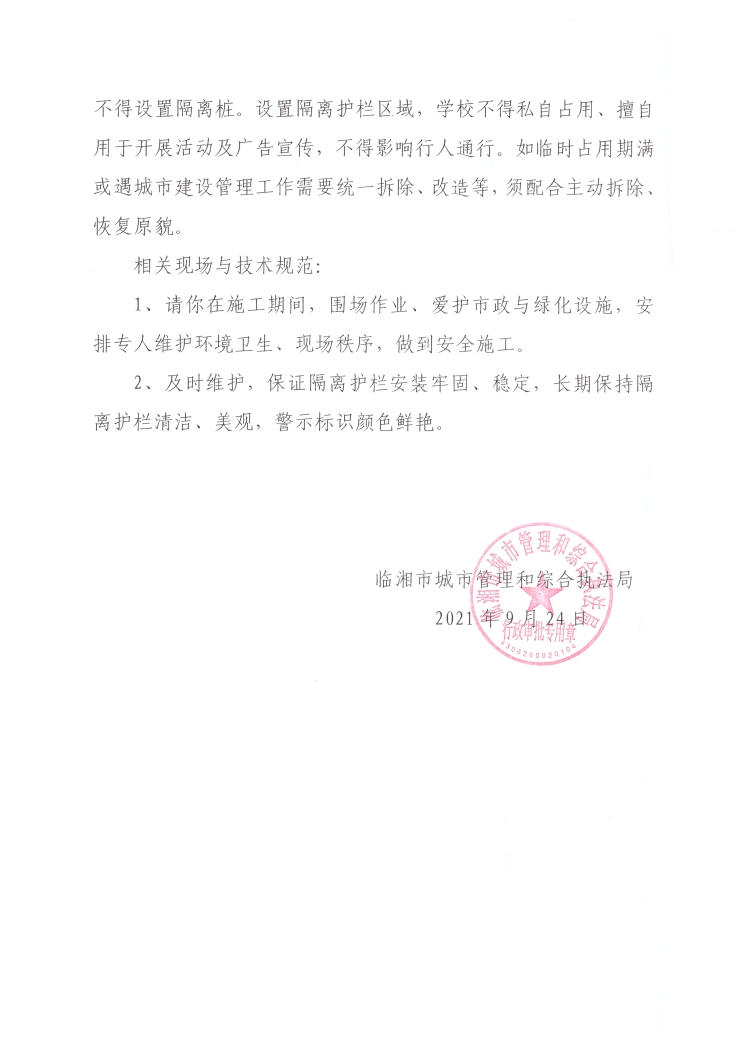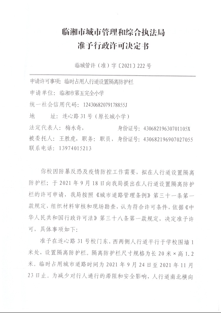 臨湘市第五完全小學(xué)臨時(shí)占用人行道許可