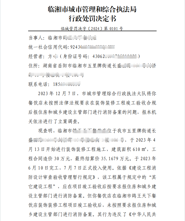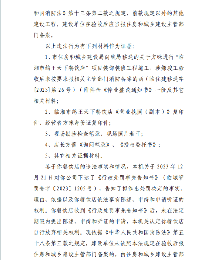 對(duì)某公司未經(jīng)消防備案的行政處罰