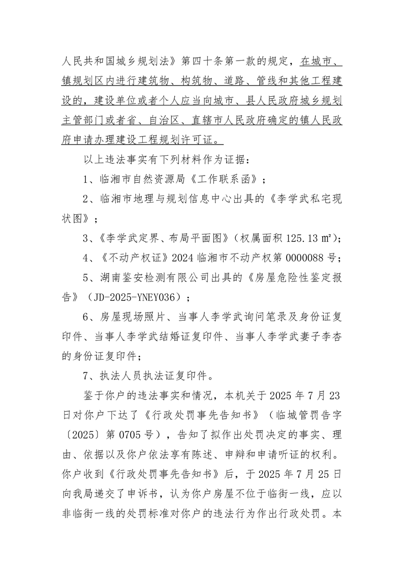 對李某未取得建設工程規劃許可證擅自擴建私房的行政處罰
