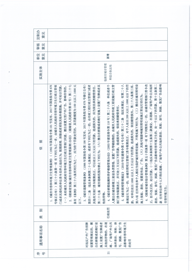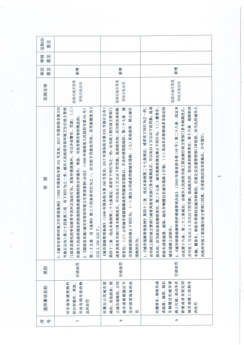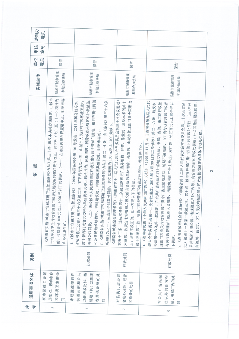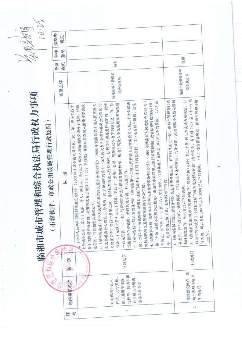 臨湘市城市管理行政執法局行政權力事項—行政處罰—市容秩序、市政公用設施類