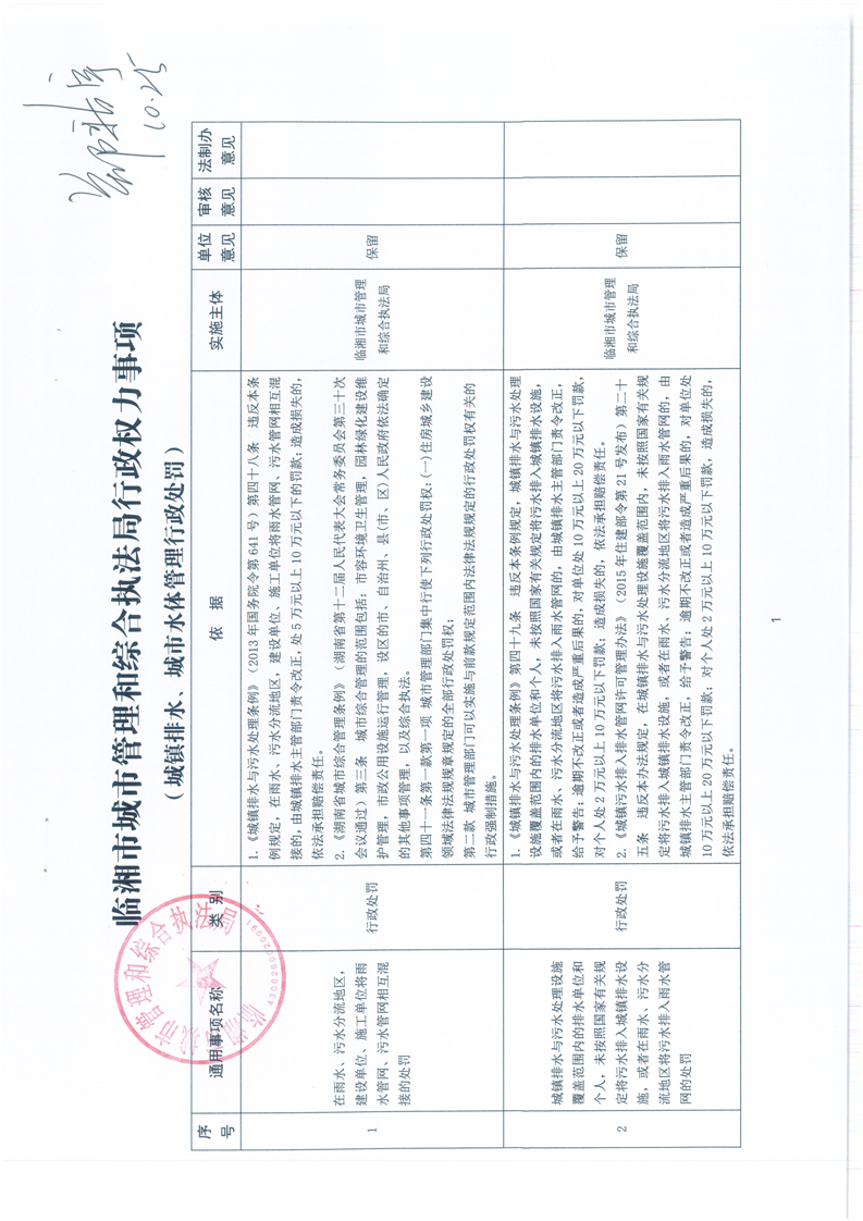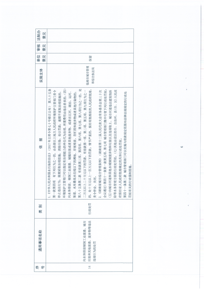 臨湘市城市管理行政執(zhí)法局行政權(quán)力事項(xiàng)—行政處罰—城鎮(zhèn)排水、城市水體類(lèi)