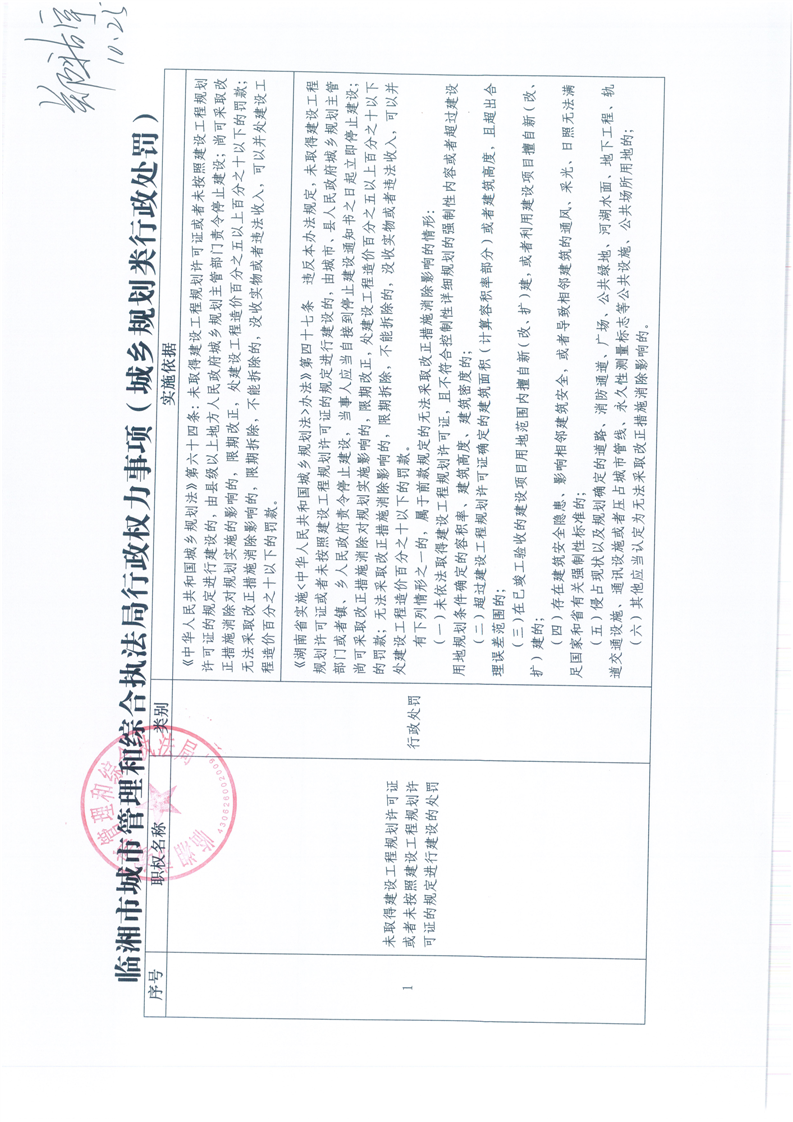 臨湘市城市管理行政執法局行政權力事項—行政處罰—城鄉規劃類