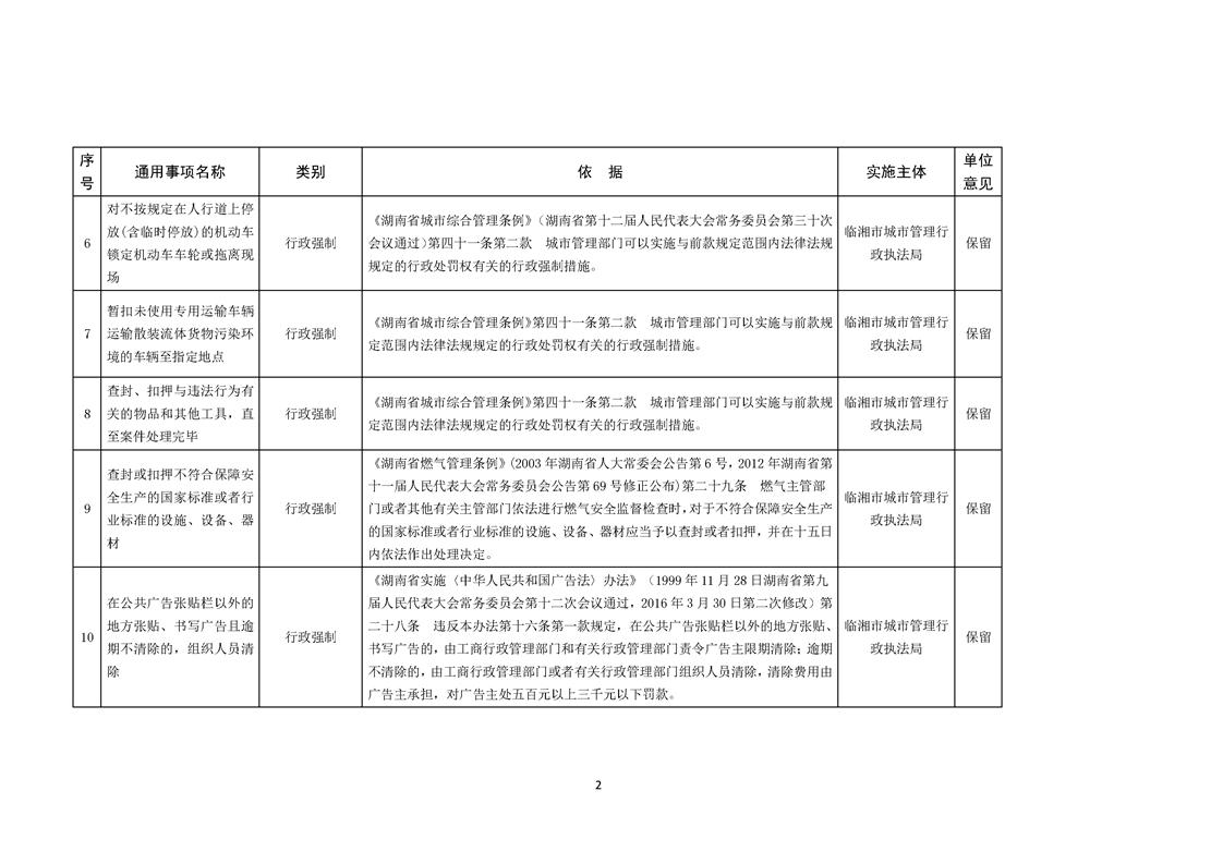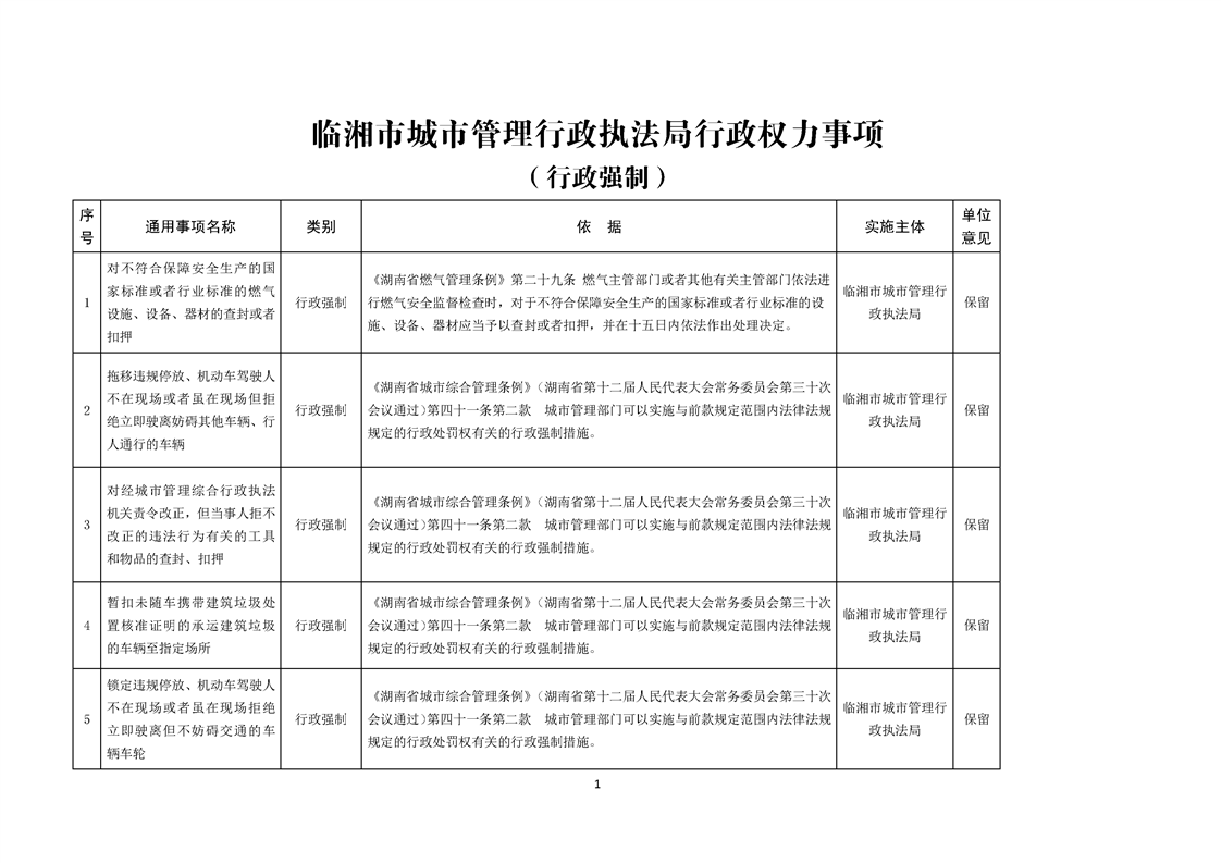 臨湘市城市管理行政執法局行政權力事項—行政強制
