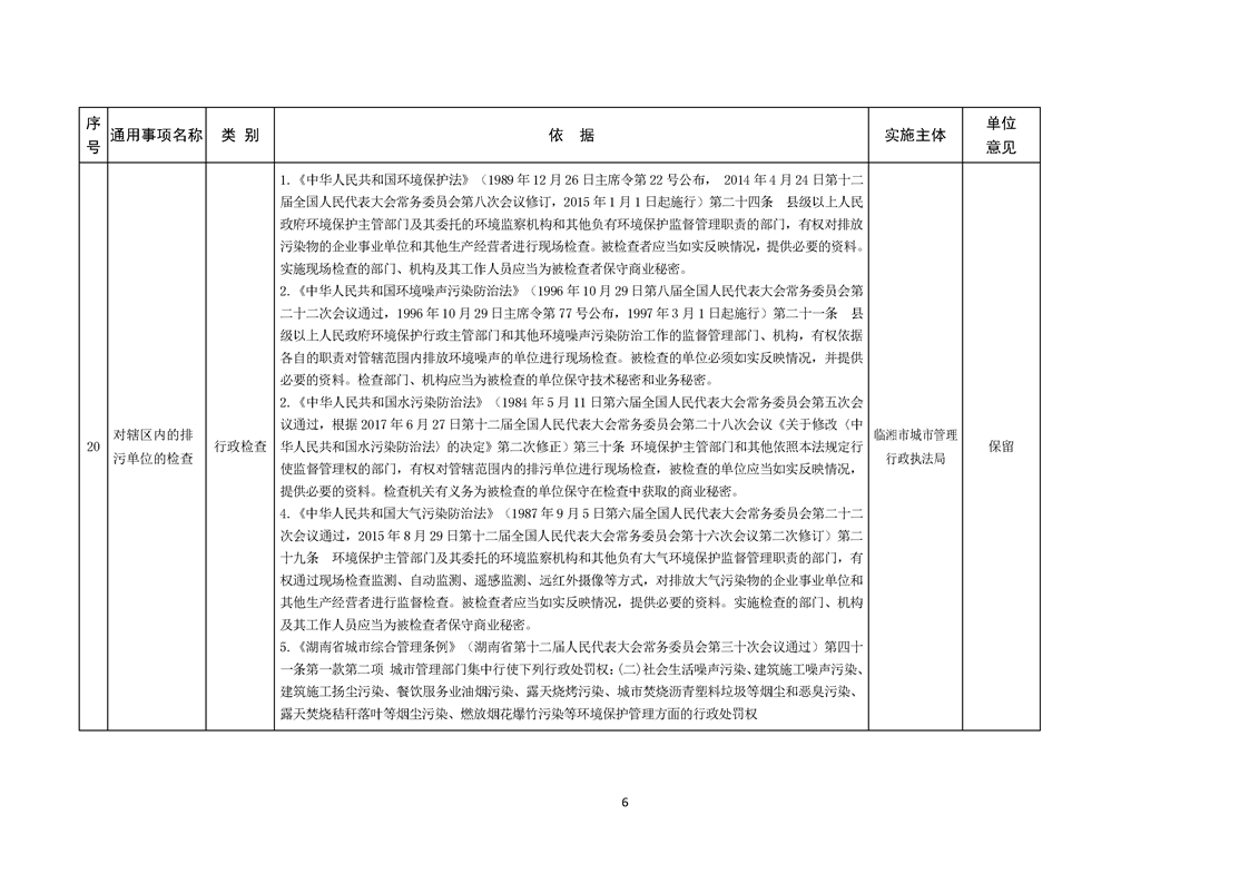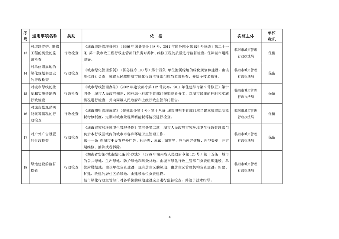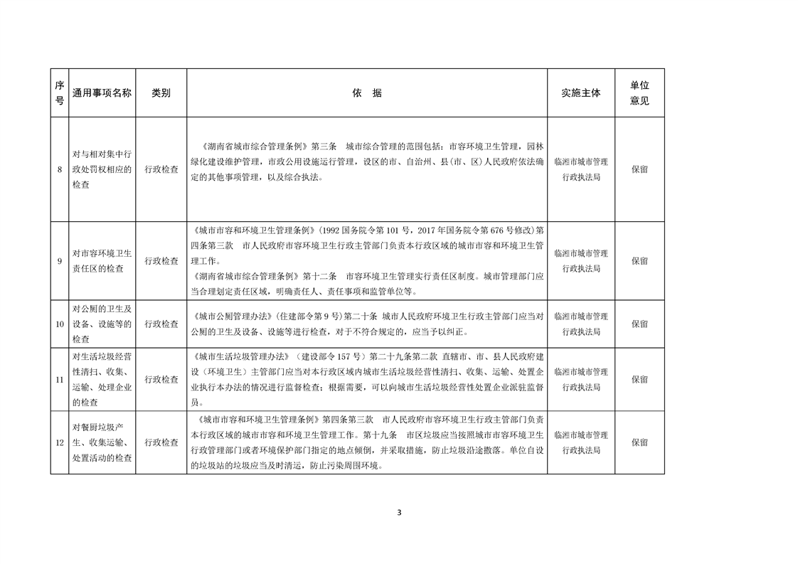 臨湘市城市管理行政執(zhí)法局行政權(quán)力事項—行政檢查