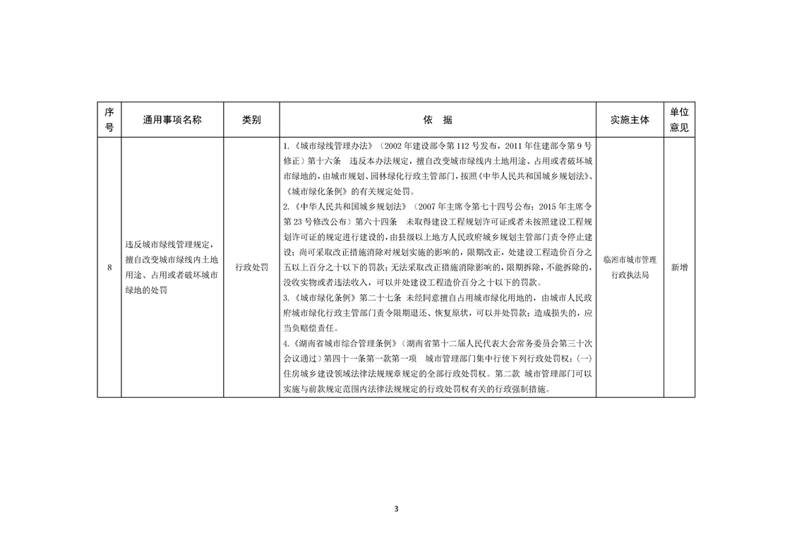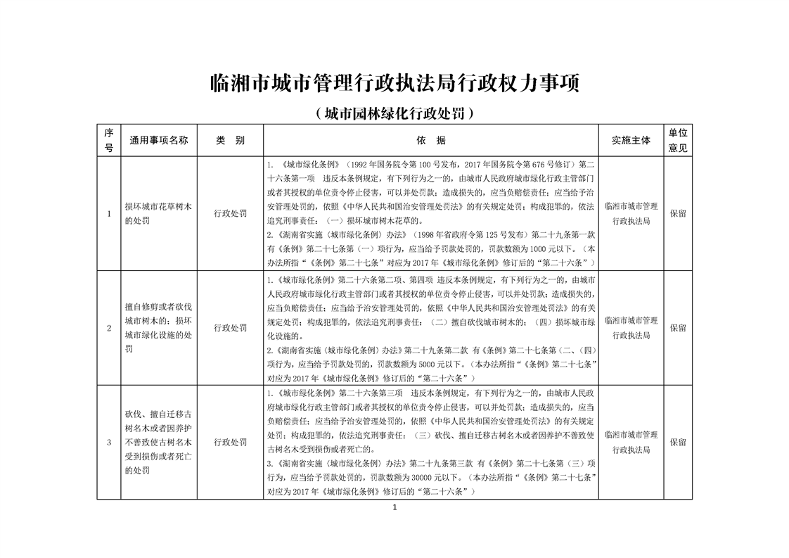 臨湘市城市管理行政執(zhí)法局行政權(quán)力事項(xiàng)—行政處罰(園林綠化類)