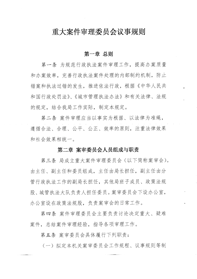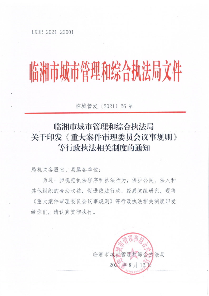 《重大案件審理委員會議事規格》等行政執法相關制度的通知