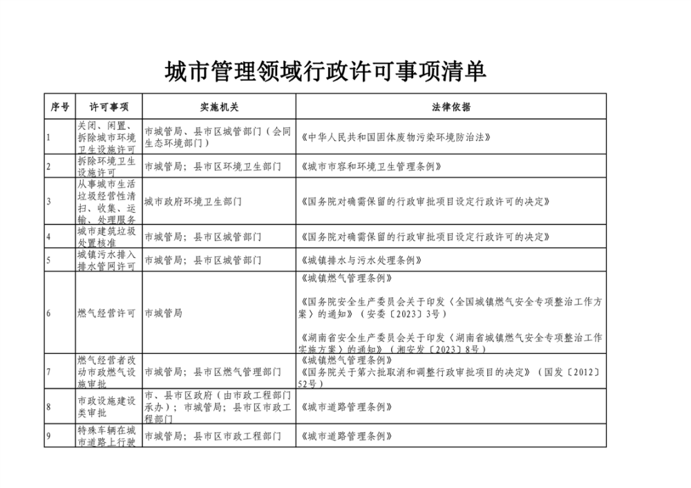 臨湘市城市管理和綜合執(zhí)法局2024年行政執(zhí)法事項清單