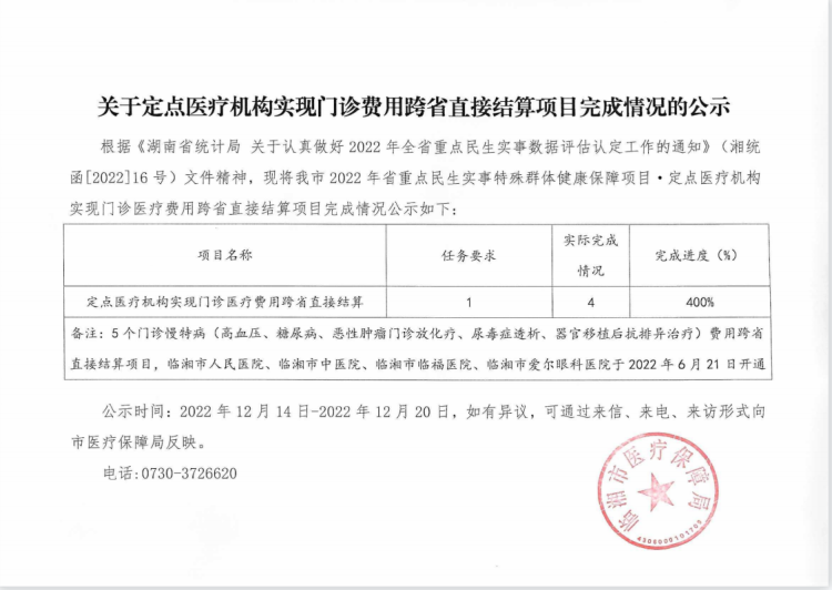關于定點醫療機構實現門診費用跨省直接結算項目完成情況的公示