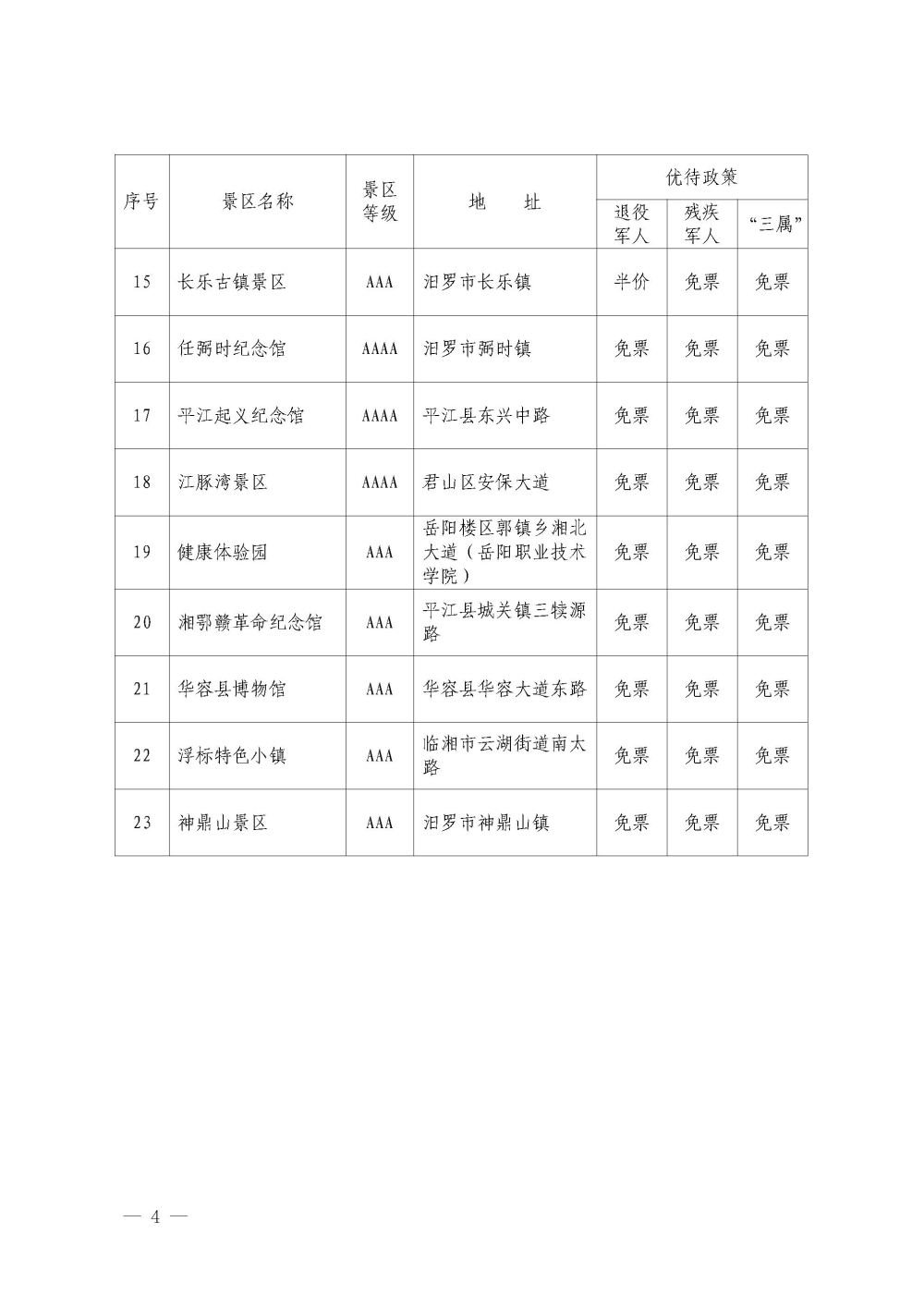 附件:岳陽市國有等級景區(qū)優(yōu)待目錄