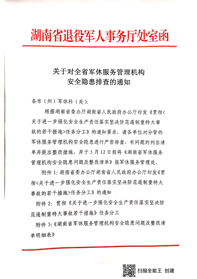 關(guān)于對(duì)全省軍休服務(wù)管理機(jī)構(gòu)安全隱患排查的通知
