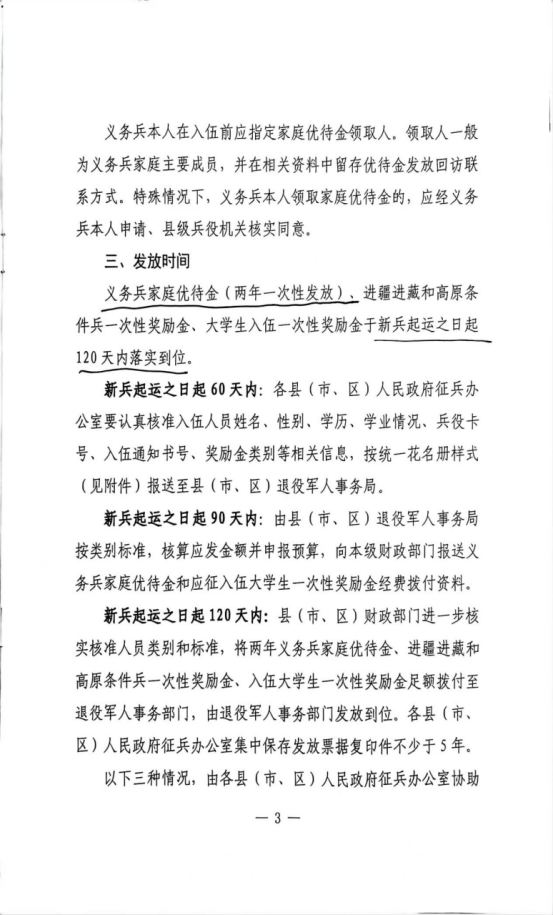 關于進一步做好義務兵家庭優待金和大學生一次性獎勵金發放工作的通知