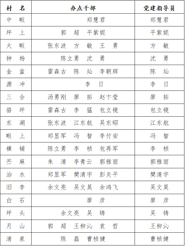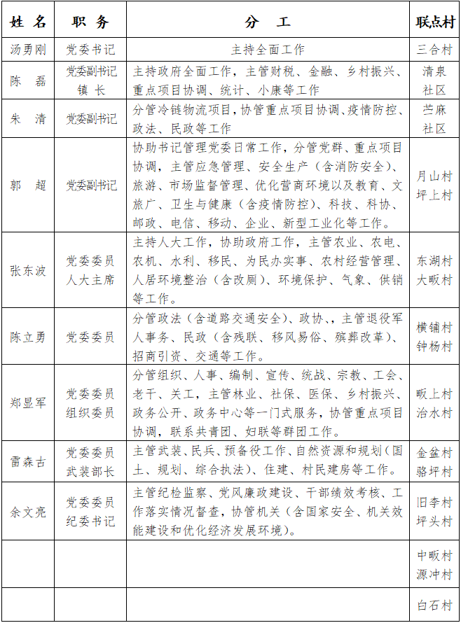 桃林鎮2023年黨政領導分工及各村(社區)辦點情況