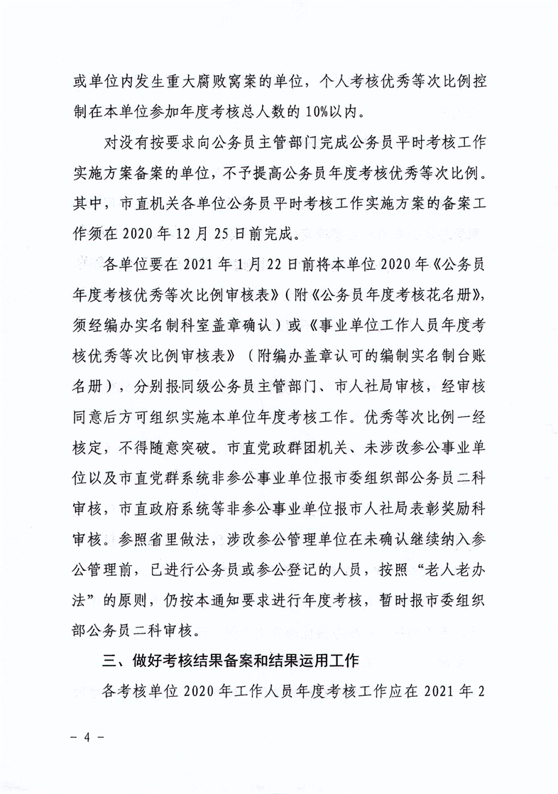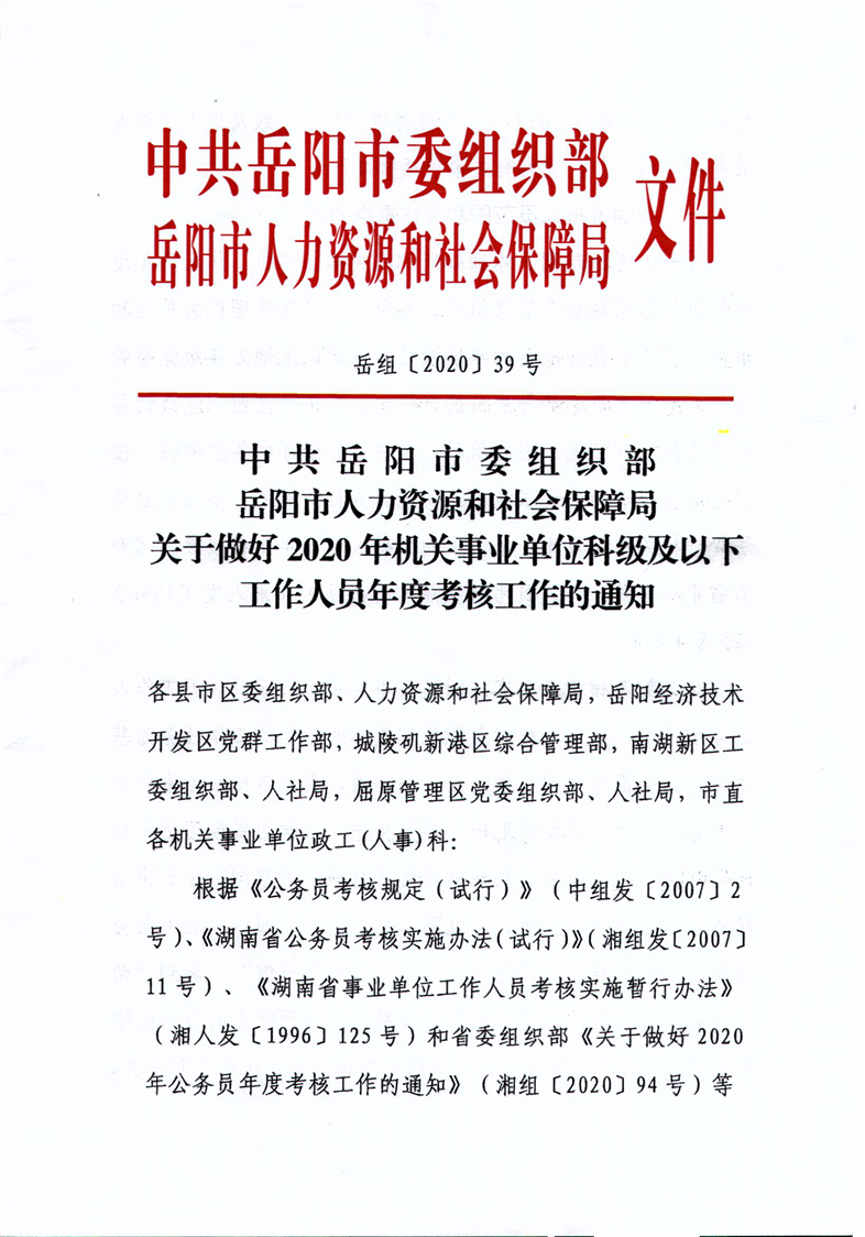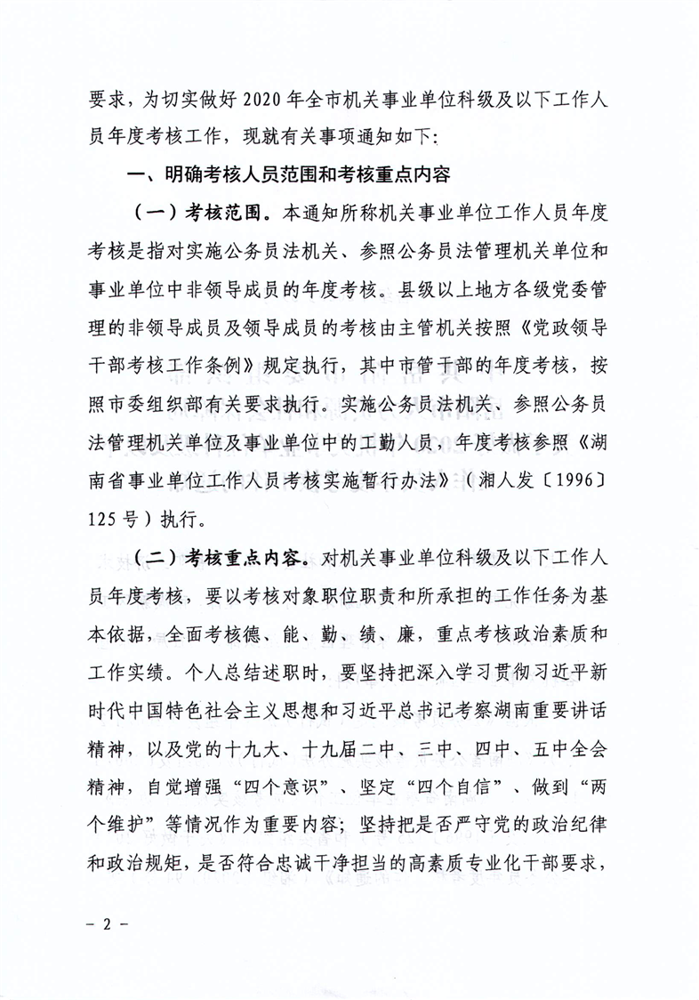 關于做好2020年機關事業單位科級及以下工作人員年度考核工作的通知