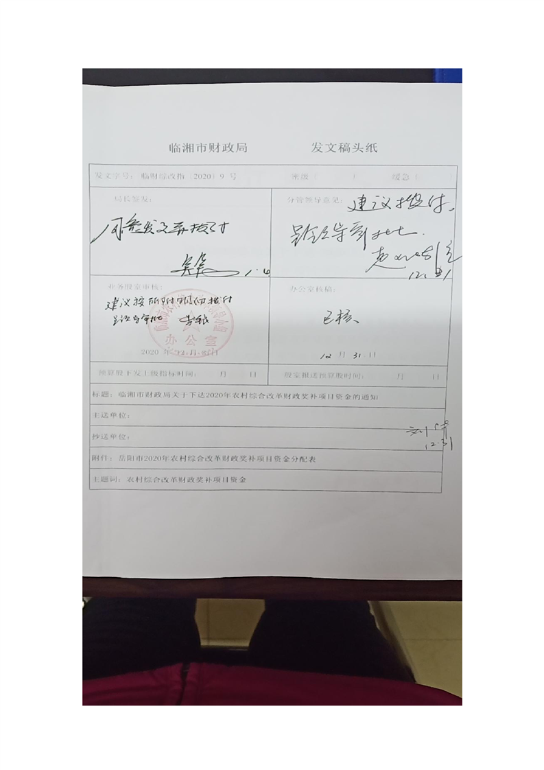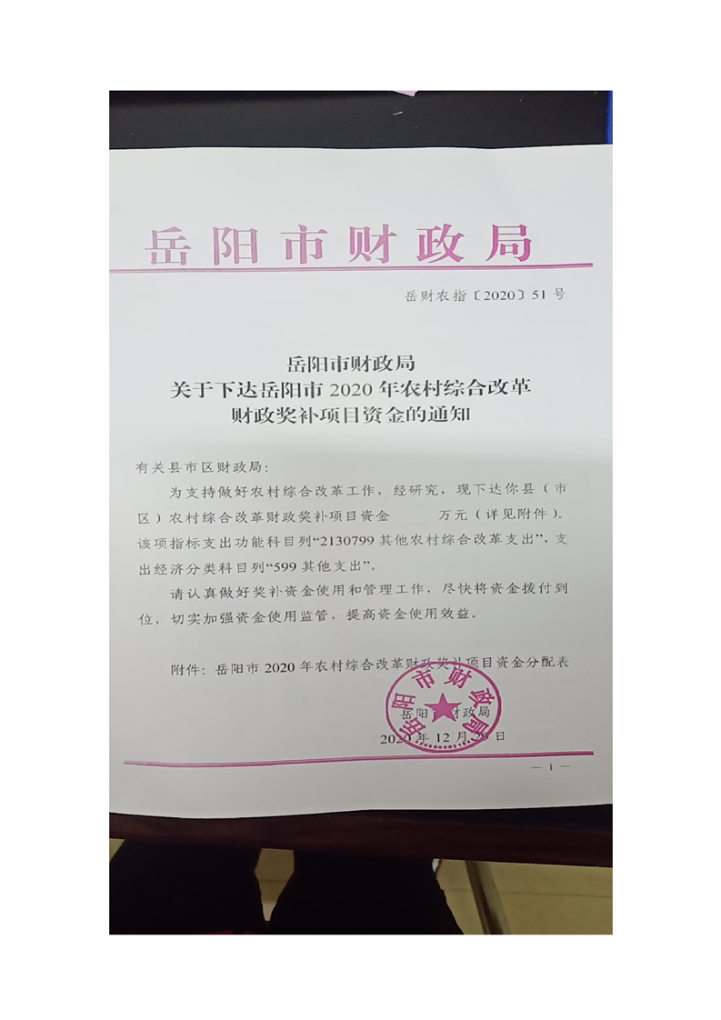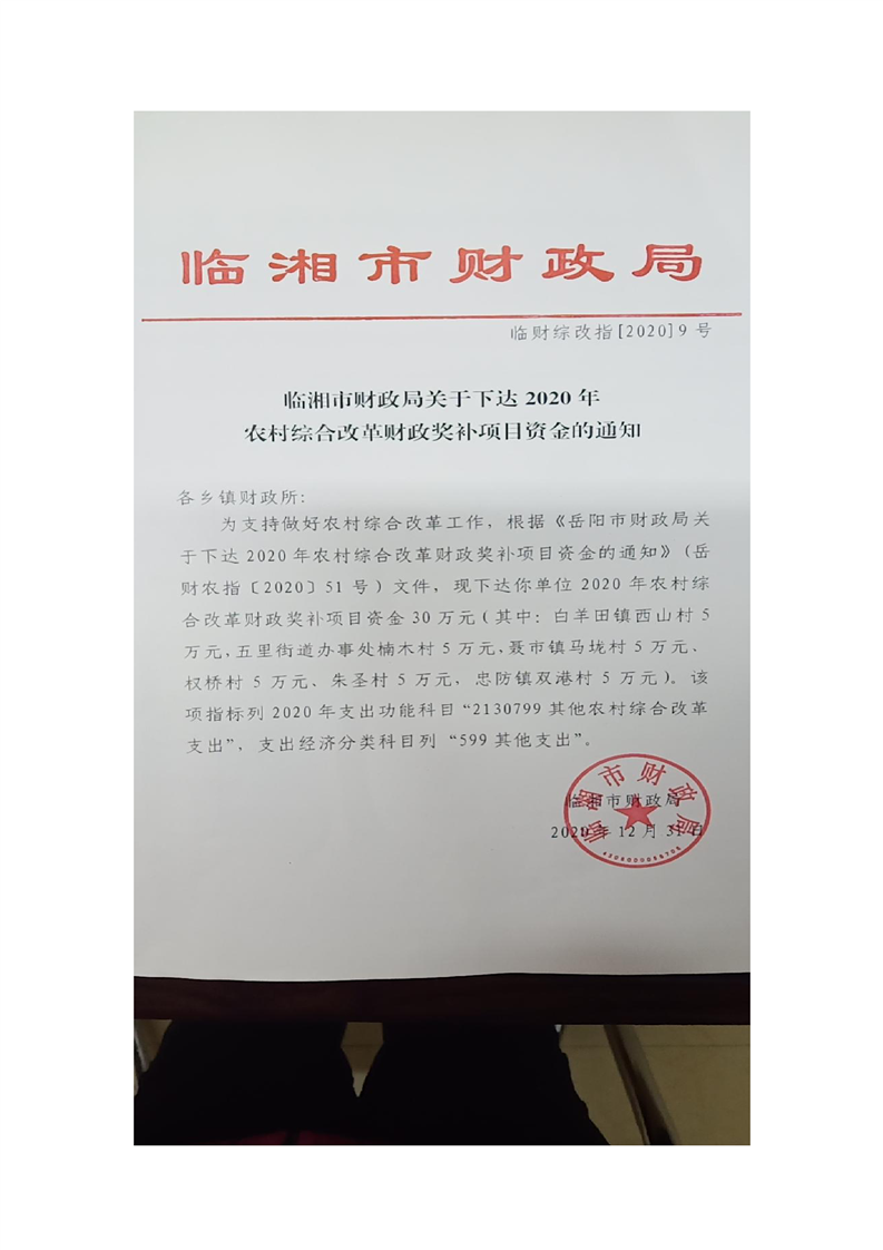 關(guān)于下達(dá)2020年農(nóng)村綜合改革財(cái)政獎(jiǎng)補(bǔ)項(xiàng)目資金的通知