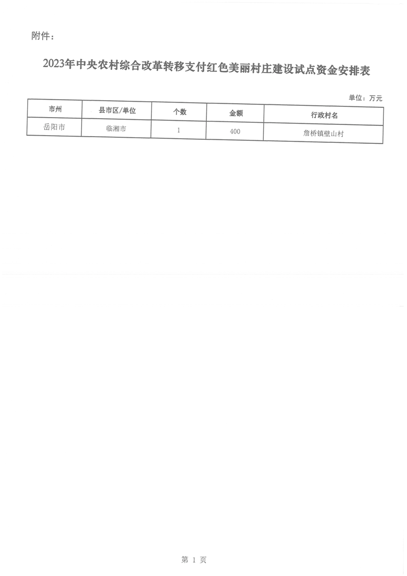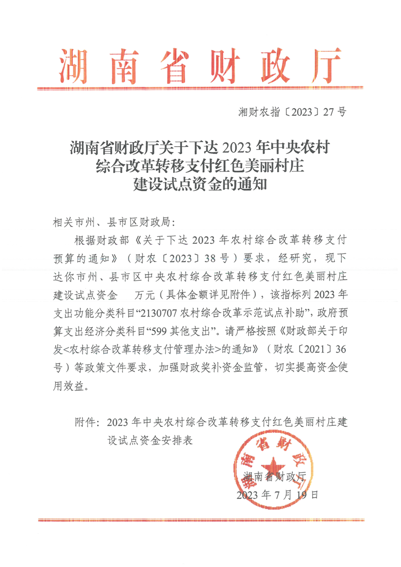 湖南省財政廳關于下達2023年中央農村綜合改革轉移支付紅色美麗村莊建設試點資金的通知