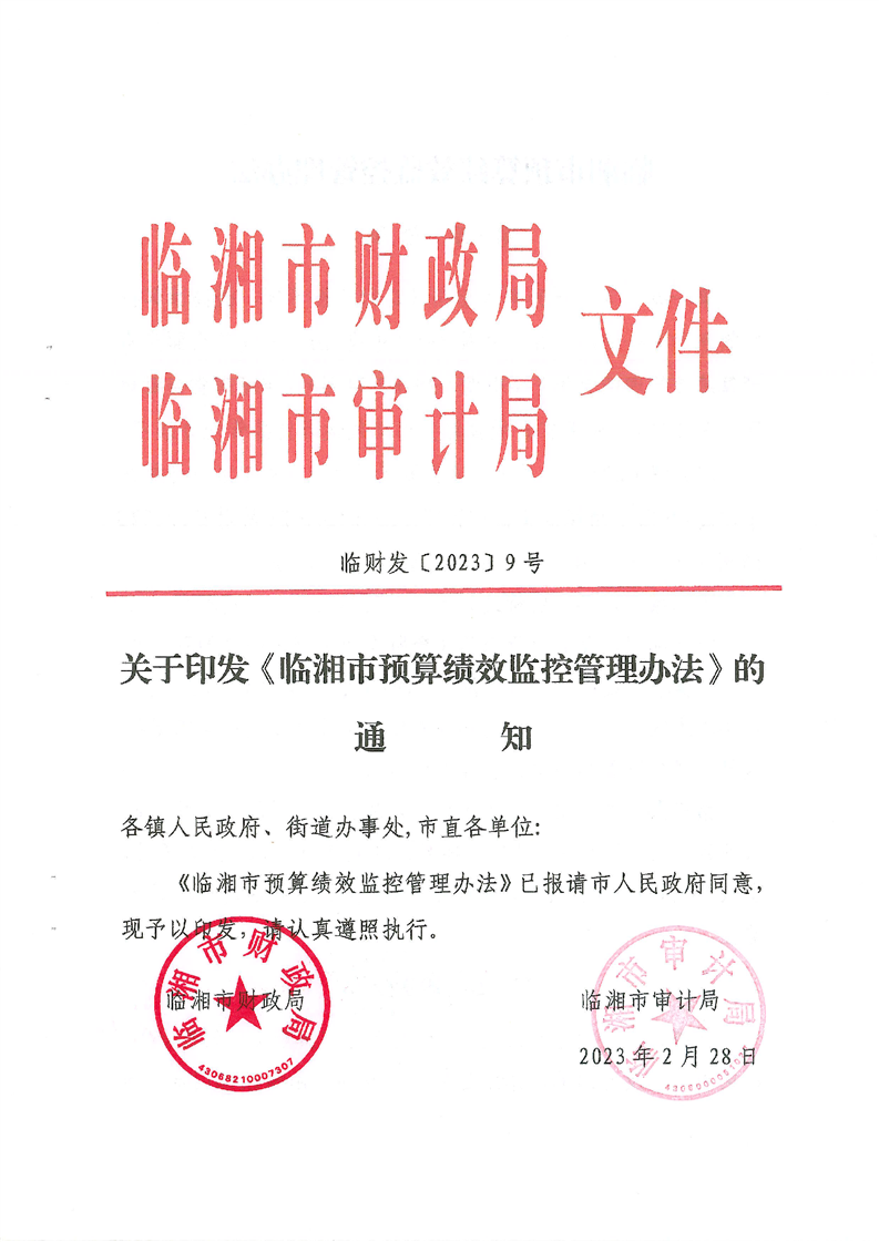 關于印發(fā)《臨湘市預算績效監(jiān)督管理辦法》的通知