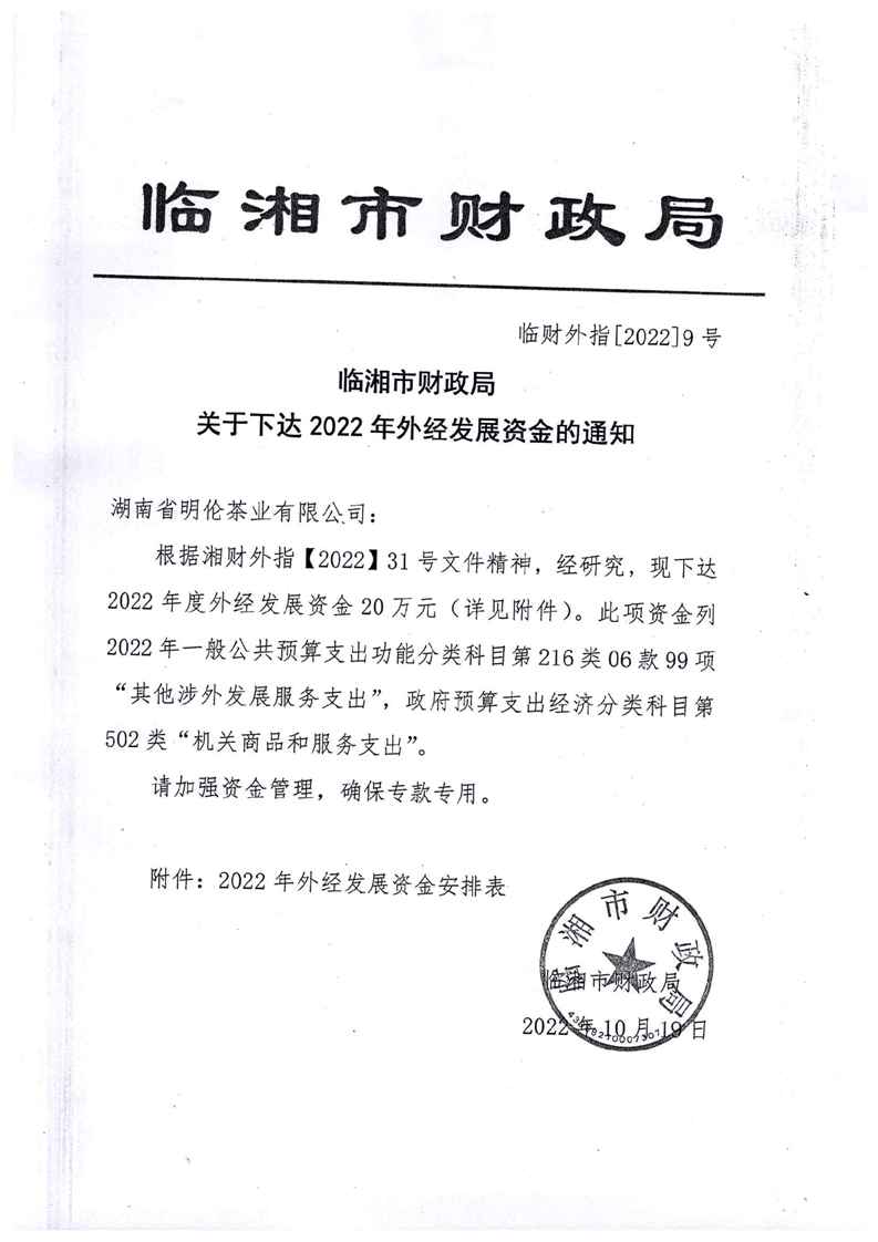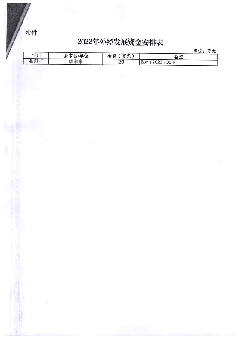 關于下達2022年外經(jīng)發(fā)展資金的通知