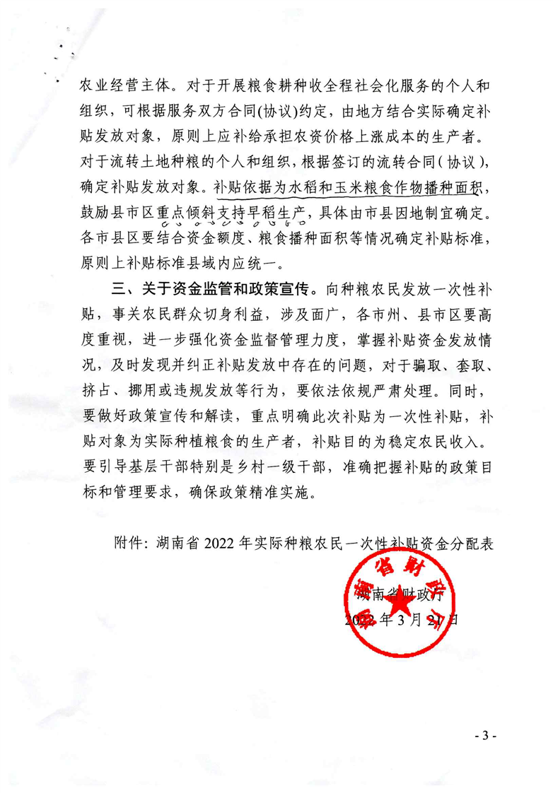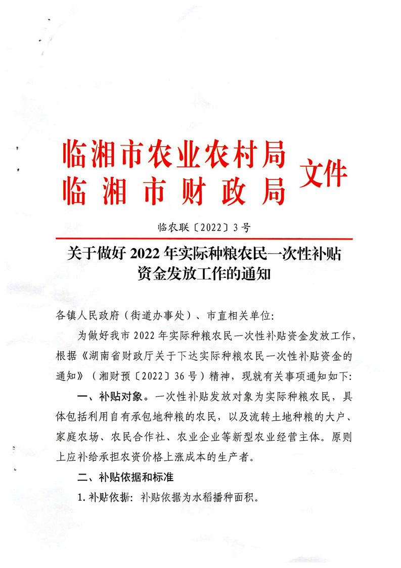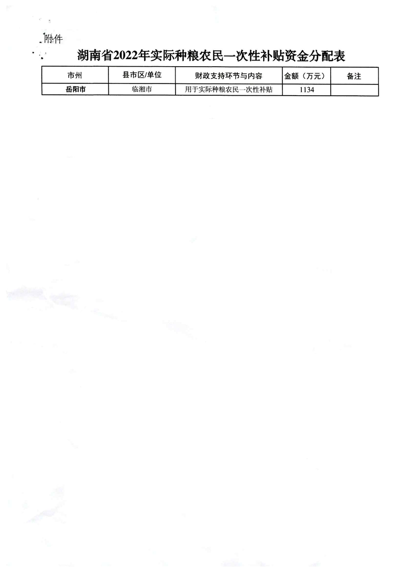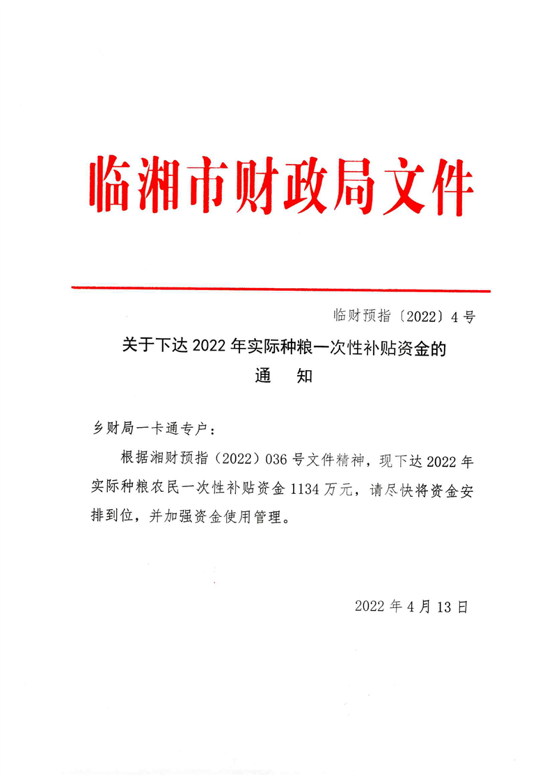 關于下達2022年實際種糧農民一次性補助資金的通知