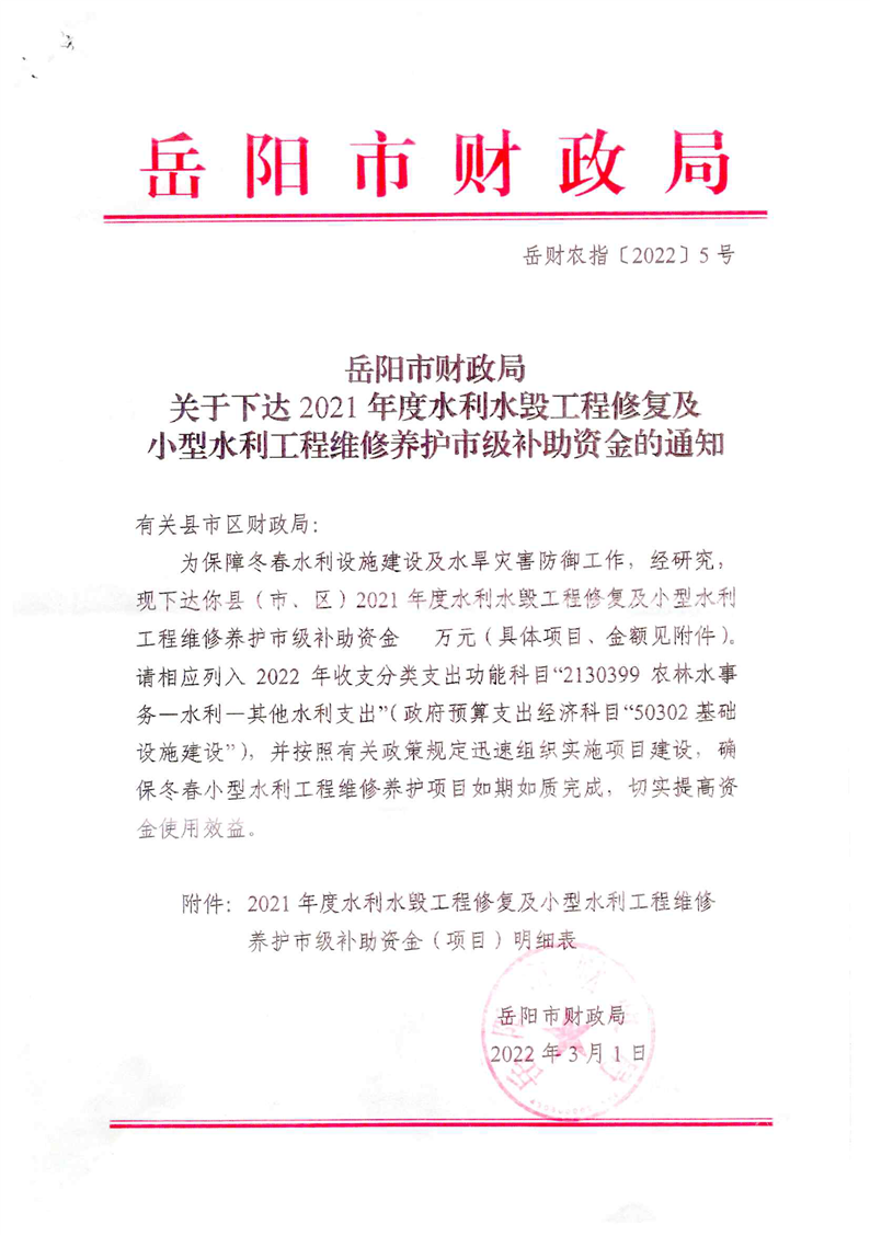 關(guān)于下達(dá)2021年度第四批省級(jí)水利資金的通知