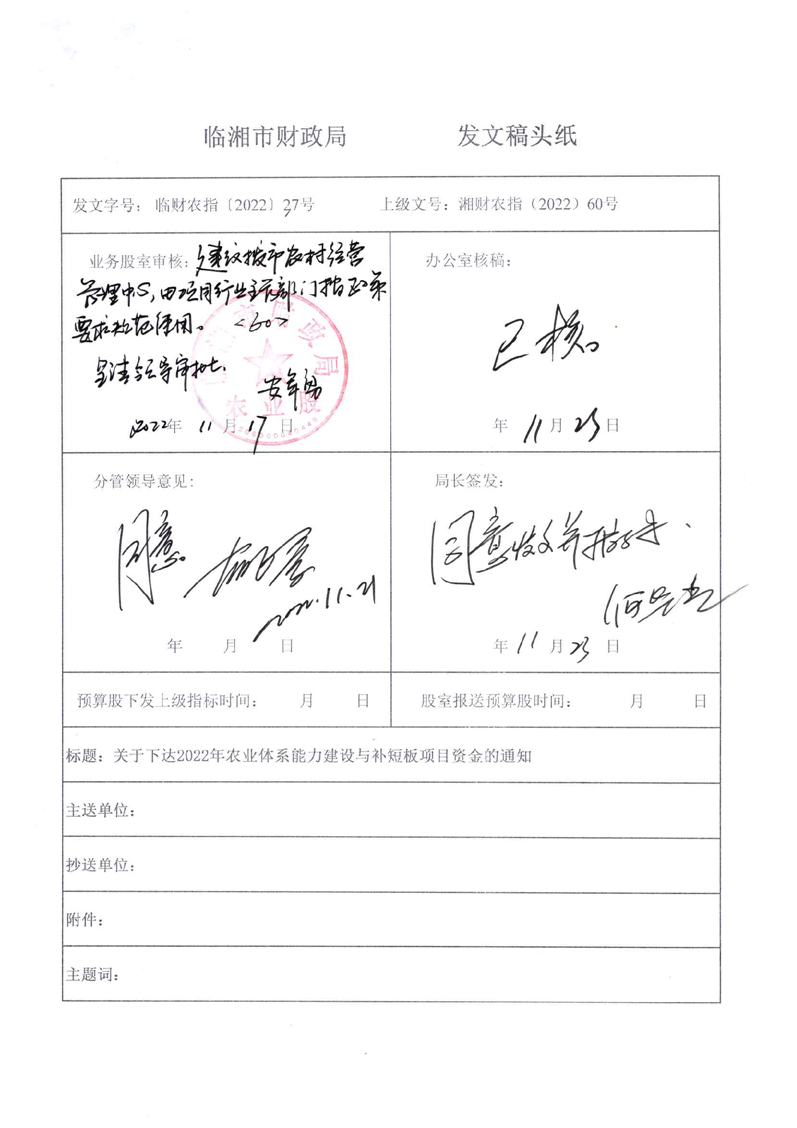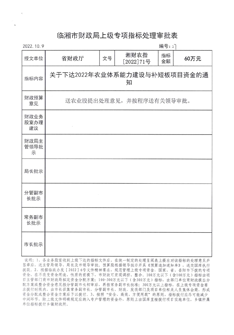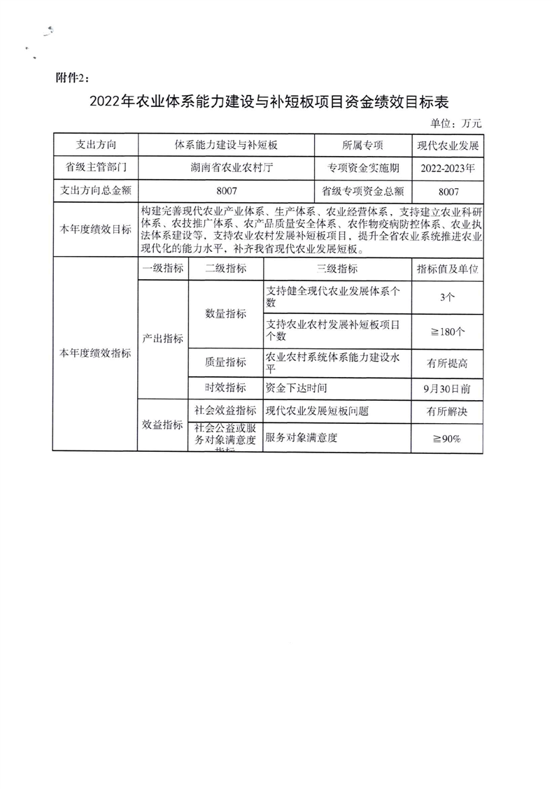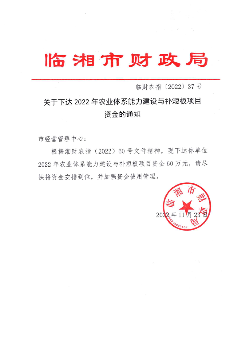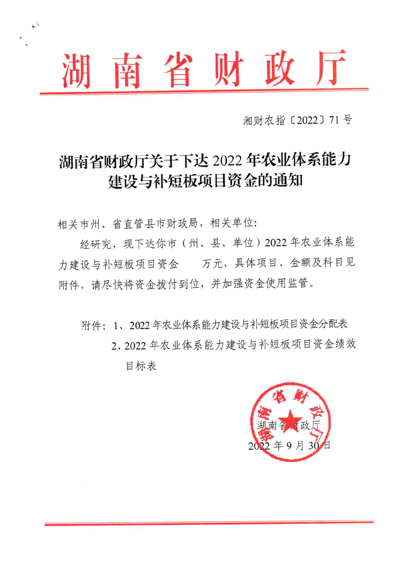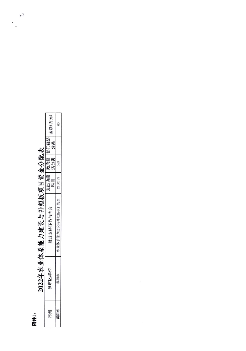 關于下達2022年農業體系能力建設與補短板項目資金的通知