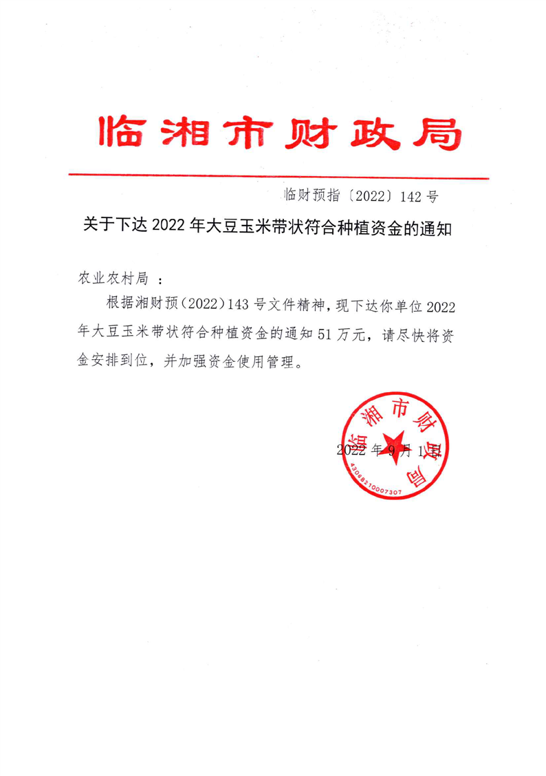 關于下達2022年大豆玉米帶狀符合種植資金的通知