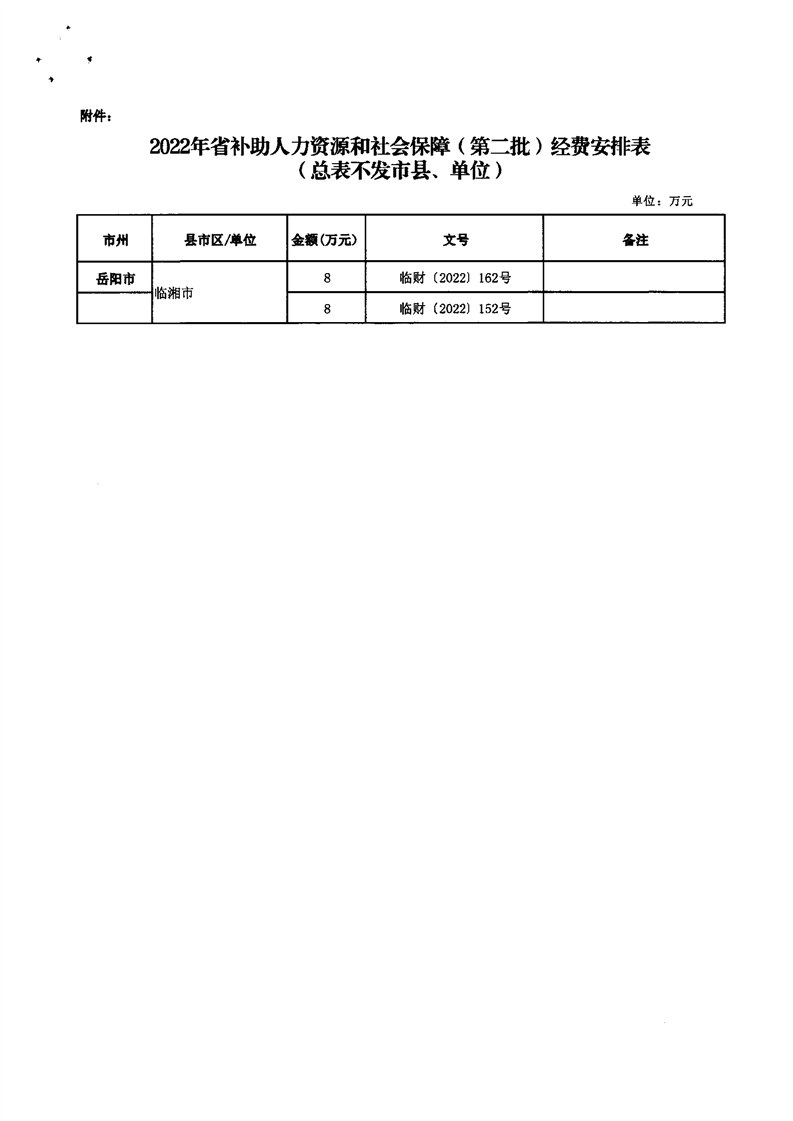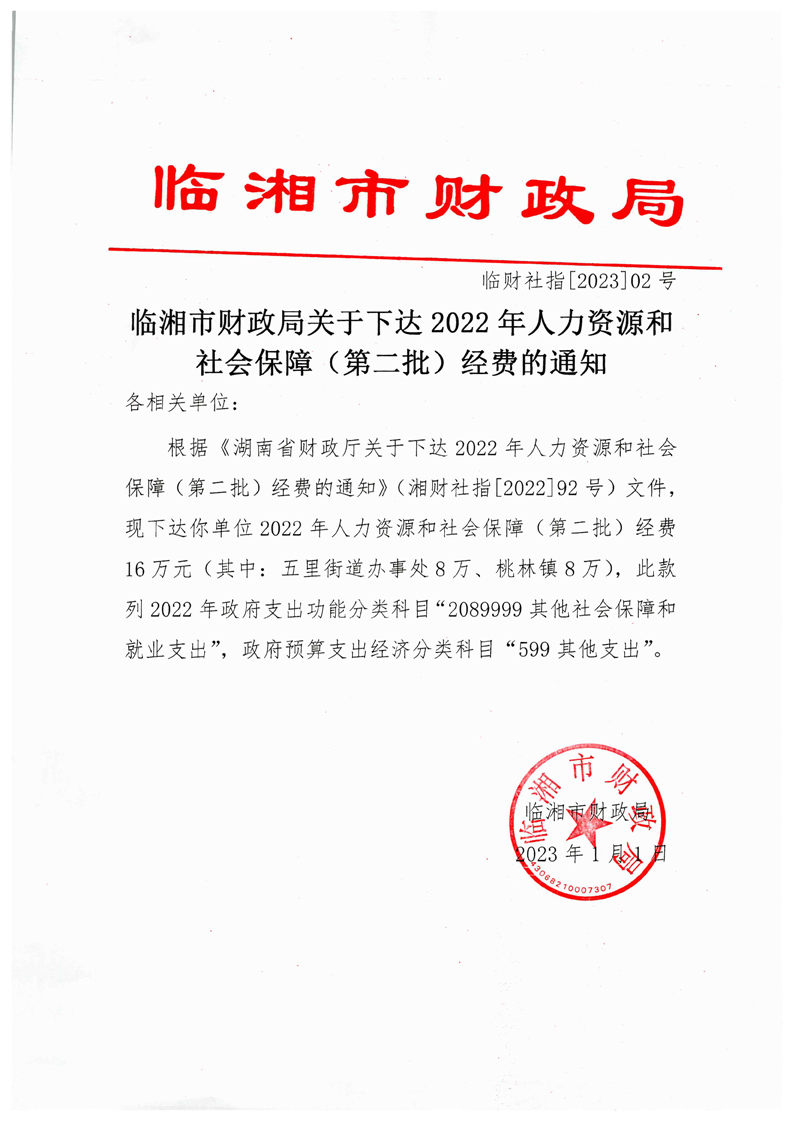 關于下達2022年人力資源和社會保障(第二批)經費的通知