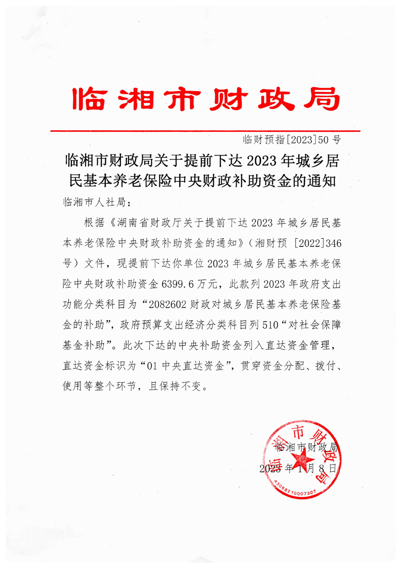 關于提前下達2023年城鄉居民基本養老保險中央財政補助資金的通知