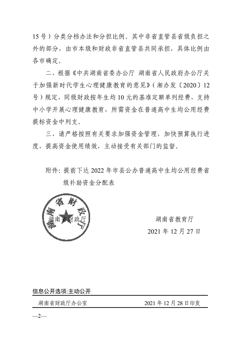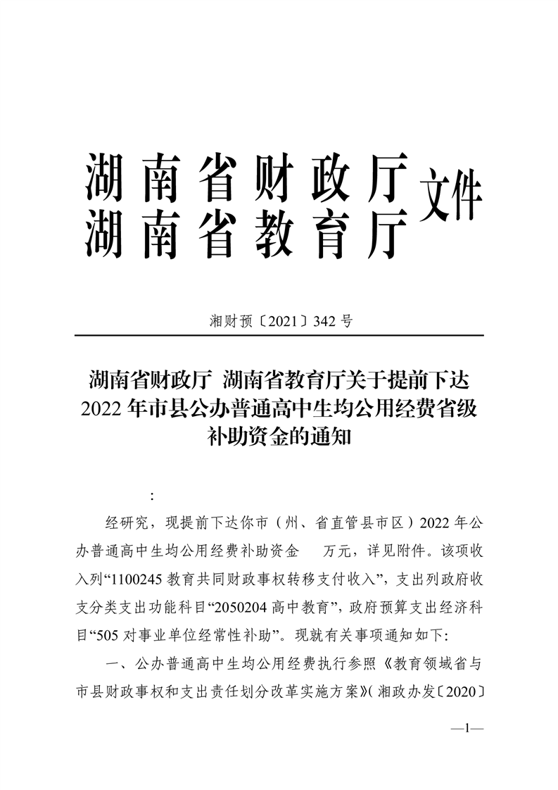 關(guān)于提前下達(dá)2022年市縣辦公普通高中生均公用經(jīng)費省級補(bǔ)助資金的通知