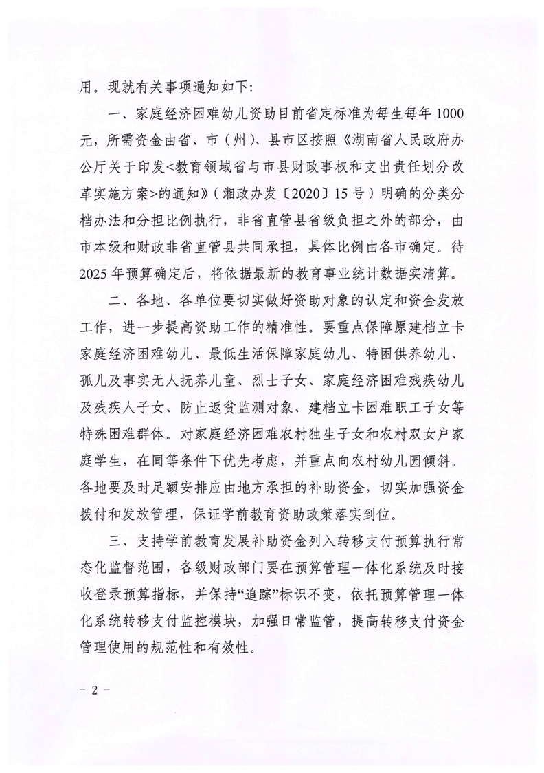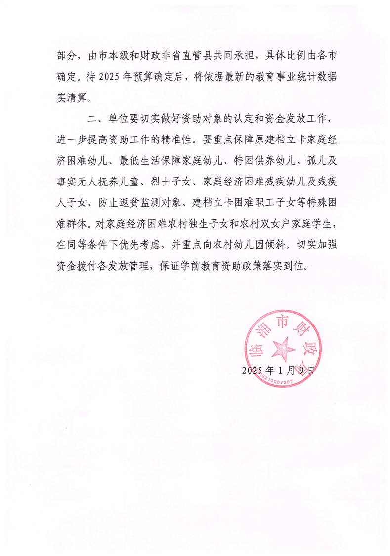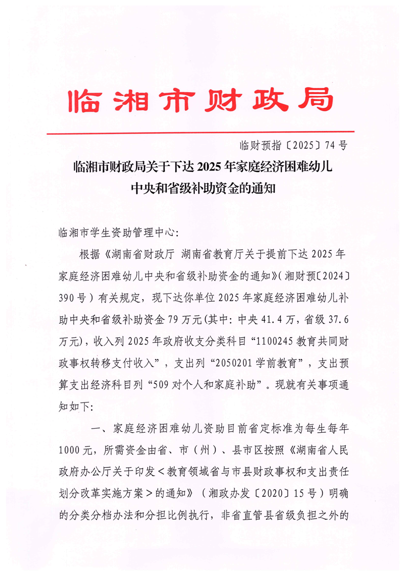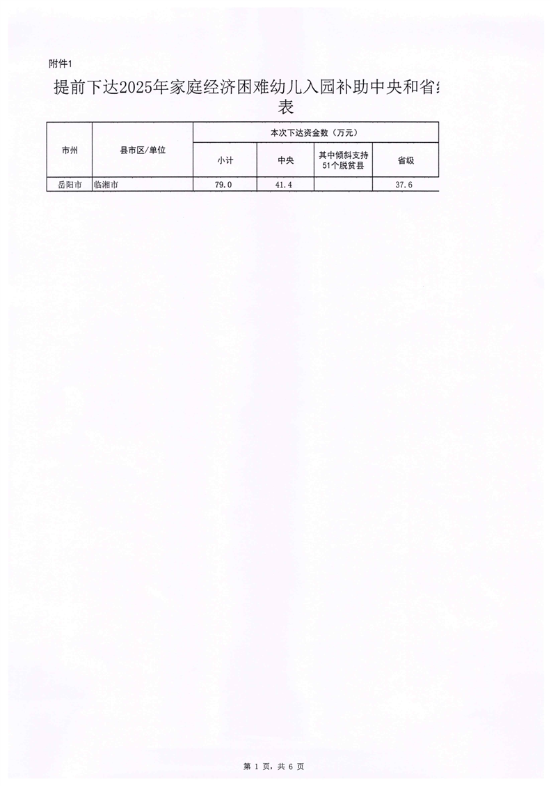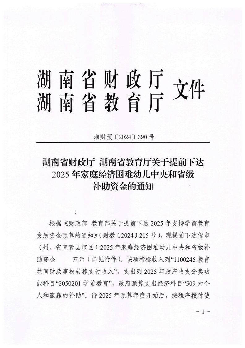 關于提前下達2025年家庭經濟困難幼兒中央和省級補助資金的通知