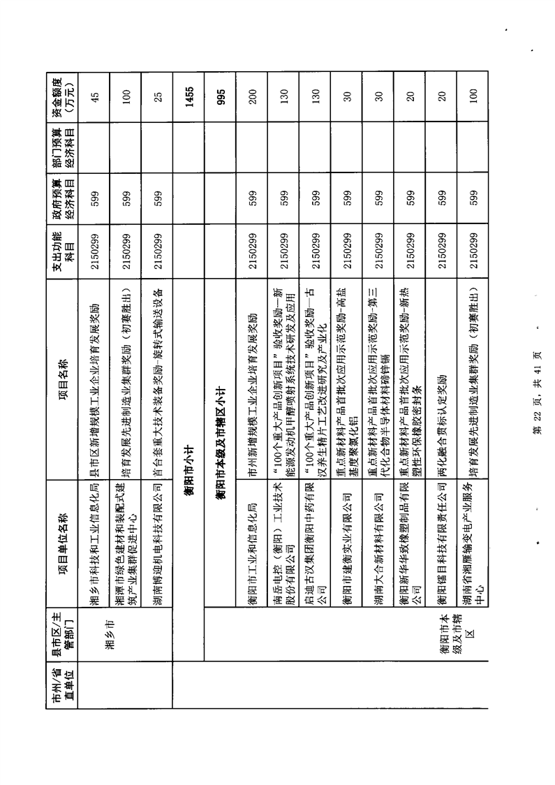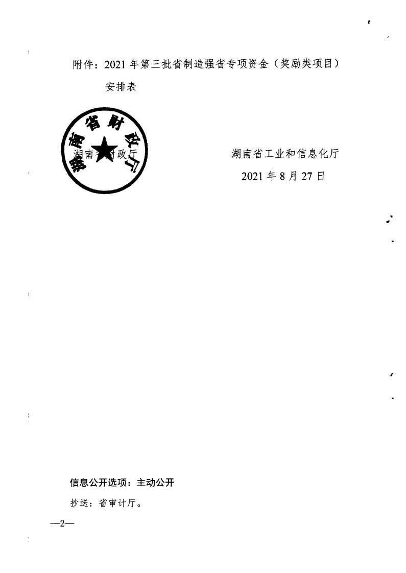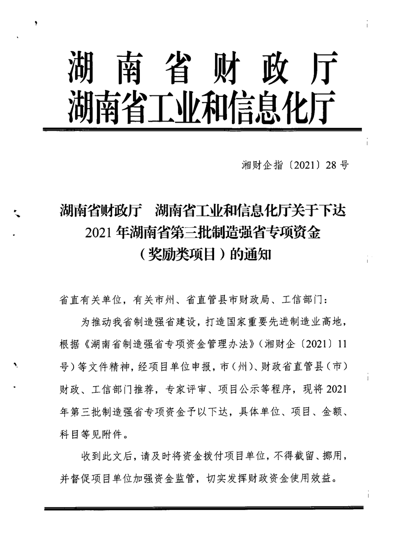 關于下達2021年湖南省第三批制造強省專項資金(獎勵類項目)的通知
