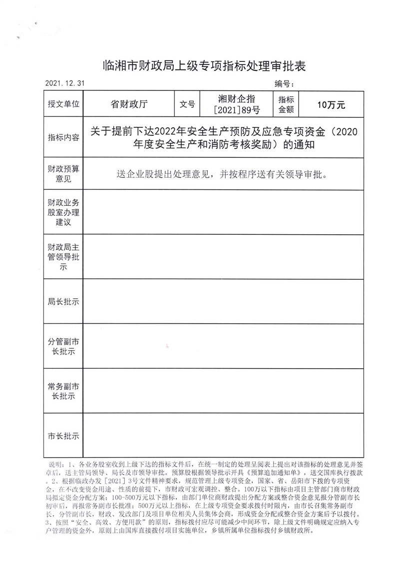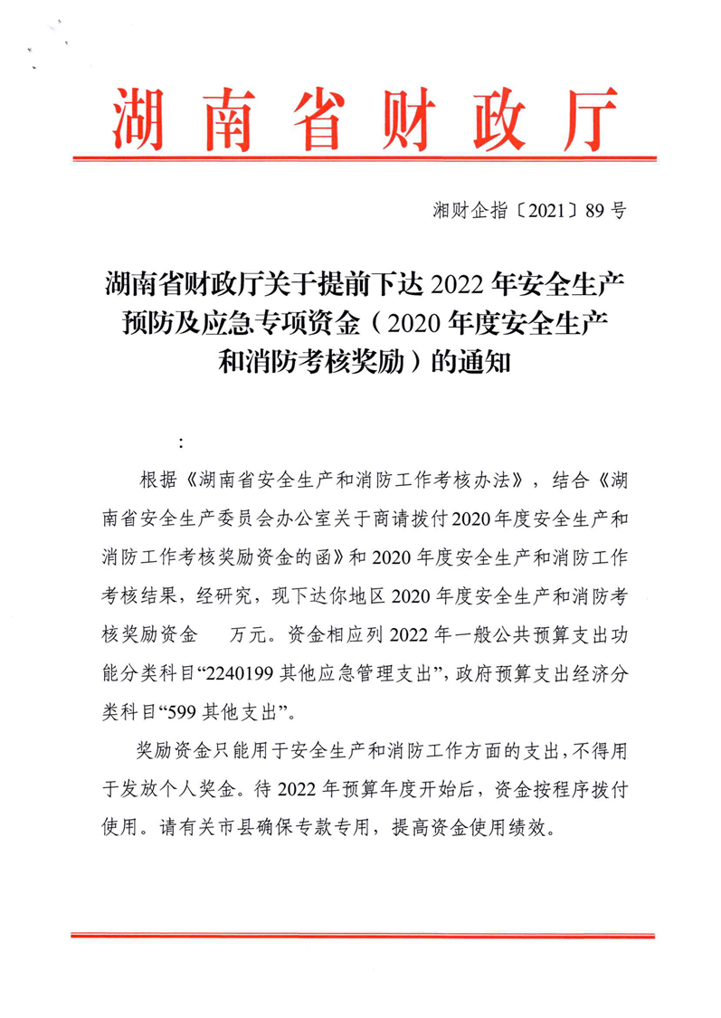 關于提前下達2022年安全生產預防及應急專項資金(2020年度安全生產和消防考核獎勵)的通知