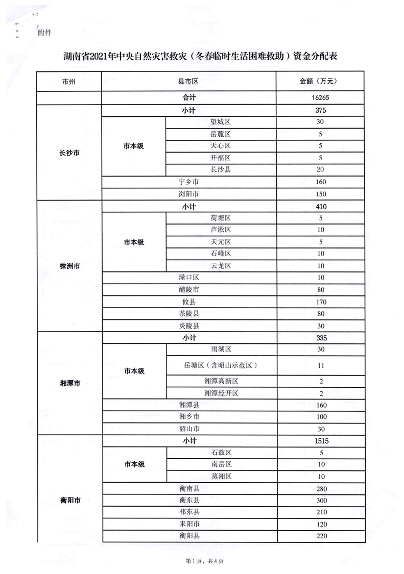 關于下達2021年中央自然災害救災(冬春臨時生活困難救助)資金的通知