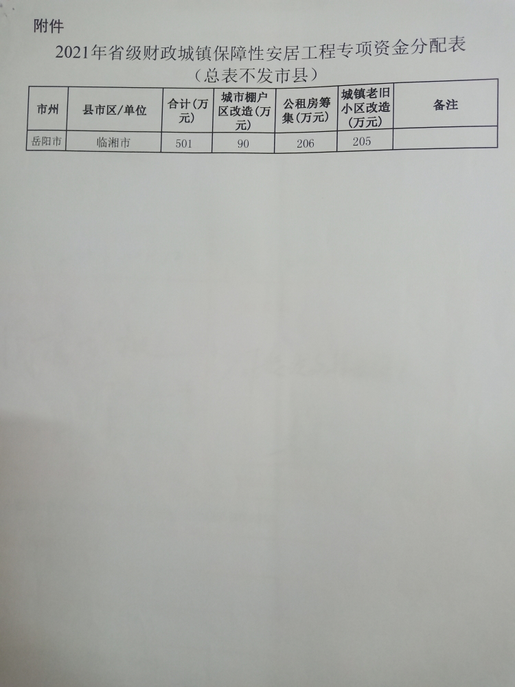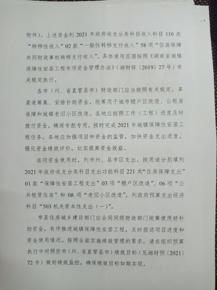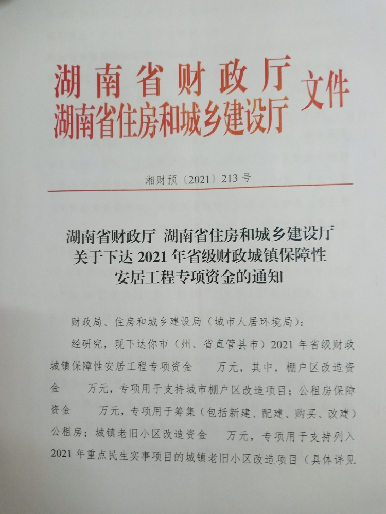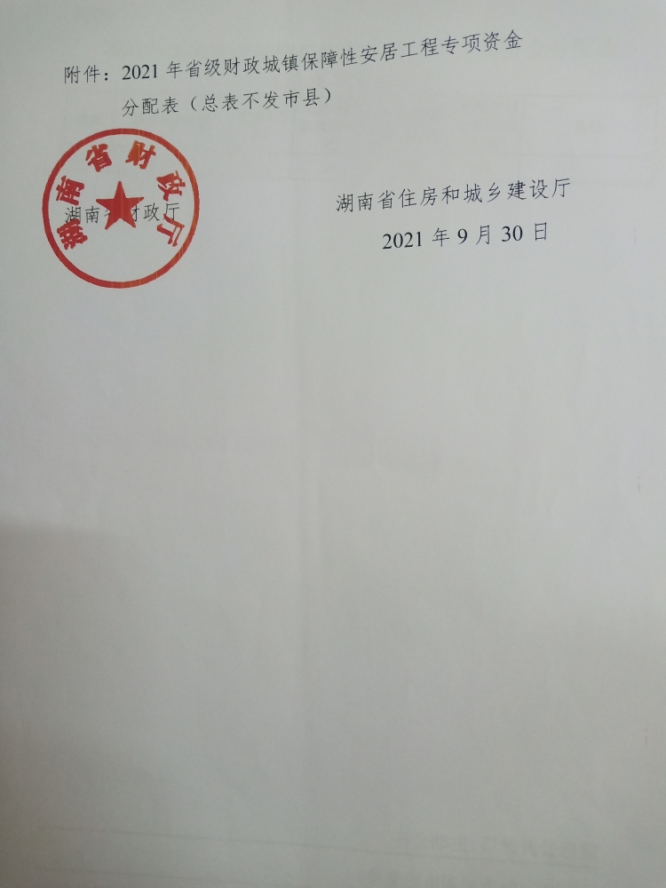 湖南省財政廳 湖南省住房和城鄉建設廳關于下達2021年省級財政城鎮保障性安居工程專項資金的通知
