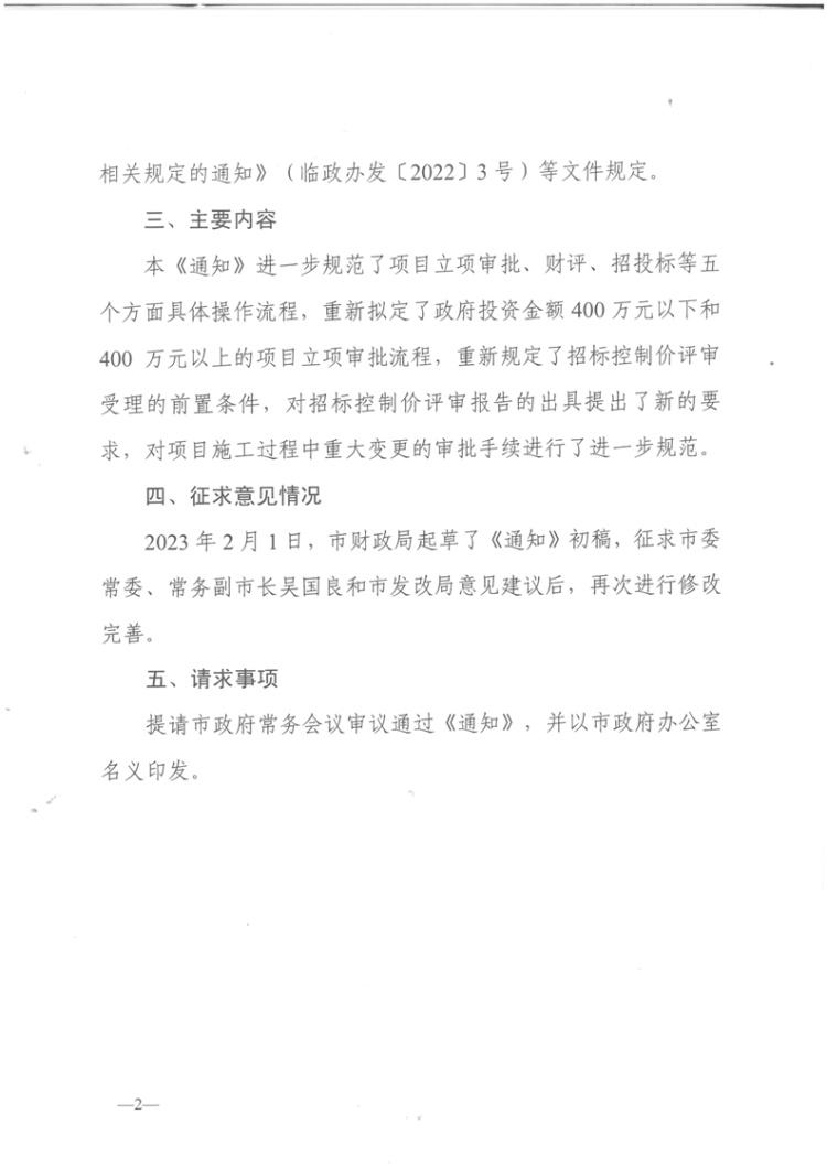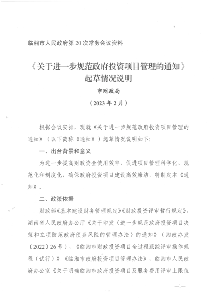 《關于進一步規范政府投資項目管理的通知》起草情況說明