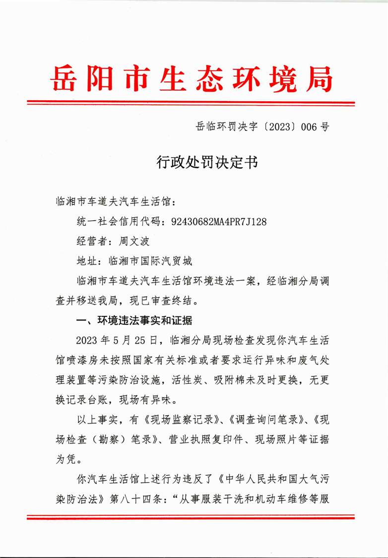岳臨環罰決字[2023]006號